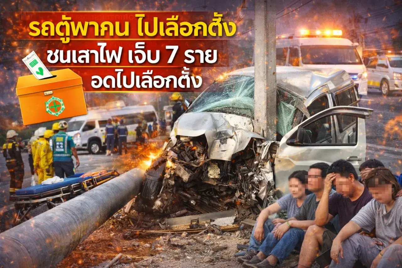 รถตู้พาคนจากสมุยกลับภูเขียวไปเลือกตั้ง หลับในชนเสาไฟ เจ็บ 7 ราย อดใช้สิทธิ์