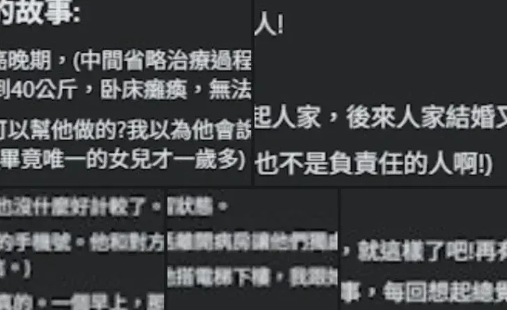 ตามคำบอกเล่าของภรรยา [ซึ่งเป็นผู้เขียนโพสต์] ระบุว่า "สามีของฉัน ได้รับการวินิจฉัยว่าเป็นมะเร็งตับระยะสุดท้าย ในขณะที่ลูกสาวคนแรกของเรา มีอายุเพียง 4 เดือน" และ "หลังจากเขาเข้ารับการรักษาอยู่นาน 1 ปี อาการป่วยไม่เพียงไม่ดีขึ้น แต่ยังลุกลามไปสู่อวัยวะอื่นๆ เขาค่อยๆสูญเสียความสามารถในการรับประทานอาหาร การพูดคุย และ ต้องนอนติดเตียง เมื่อเวลาชีวิตเหลือเพียงนับวัน ฉันคิดว่าสามีคงอยากใช้ช่วงเวลาสุดท้าย ฝากฝังถึงพ่อแม่หรือลูกสาวตัวน้อย แต่สิ่งที่เขาปรารถนากลับเป็นการได้พบ "รักแรก" ของเขาอีกสักครั้ง"
