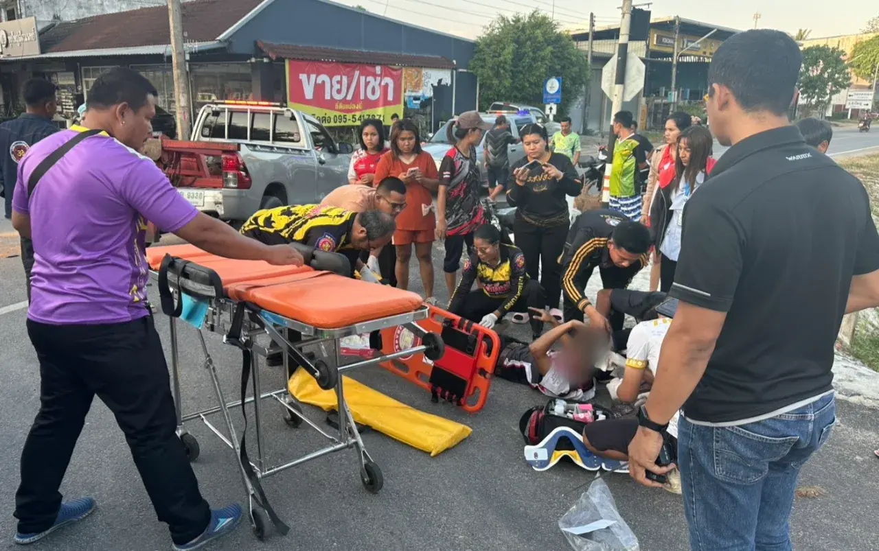 เมื่อช่วงเย็นวันที่ 9 กุมภาพันธ์ 2569 ตำรวจ สภ.ทุ่งใหญ่ จ.นครศรีธรรมราช ได้รับแจ้งอุบัติเหตุรถกระบะชนรถจักรยานยนต์ มีคนเจ็บ เหตุเกิดบนถนนสายทุ่งใหญ่ - พระแสง หมู่ 2 บ้านนาแค ต.ท่ายาง อ.ทุ่งใหญ่ จึงพร้อมด้วยเจ้าหน้าที่มูลนิใตเต็กตึ๊ง รีบเดินทางไปตรวจสอบช่วยเหลือ
