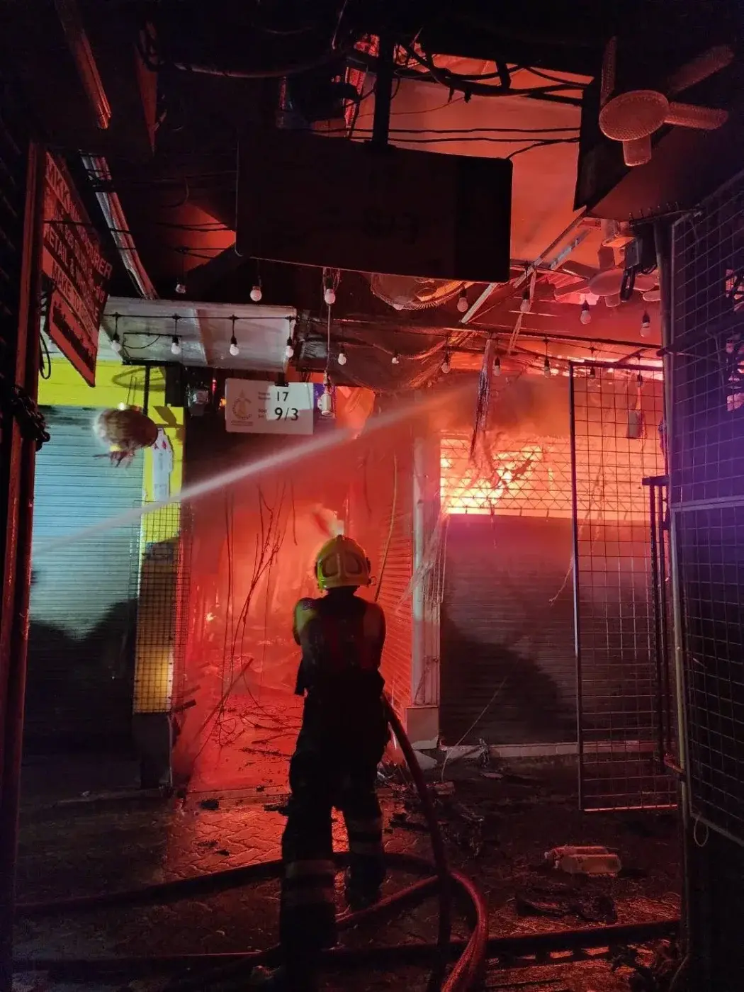 เจ้าหน้าที่ดับเพลิง กล่าวว่า "เราได้รับแจ้งเหตุเพลิงไหม้ เมื่อเวลาประมาณ 23.15 น. [ตามเวลาท้องถิ่น]" และ "เมื่อเราเดินทางไปถึงเราก็พบว่า เพลิงกำลังลุกไหม้อย่างรุนแรง ครอบคลุมร้านค้าที่อยู่ติดกันหลายร้าน" และ "เนื่องจากผังตลาดมีความหนาแน่น และ ภายในร้านมีวัสดุที่ติดไฟได้ง่าย จึงทำให้ไฟลุกลามจากร้านหนึ่ง ไปยังอีกร้านได้อย่างรวดเร็ว..."