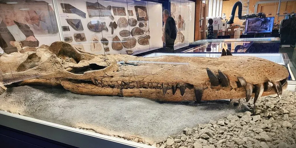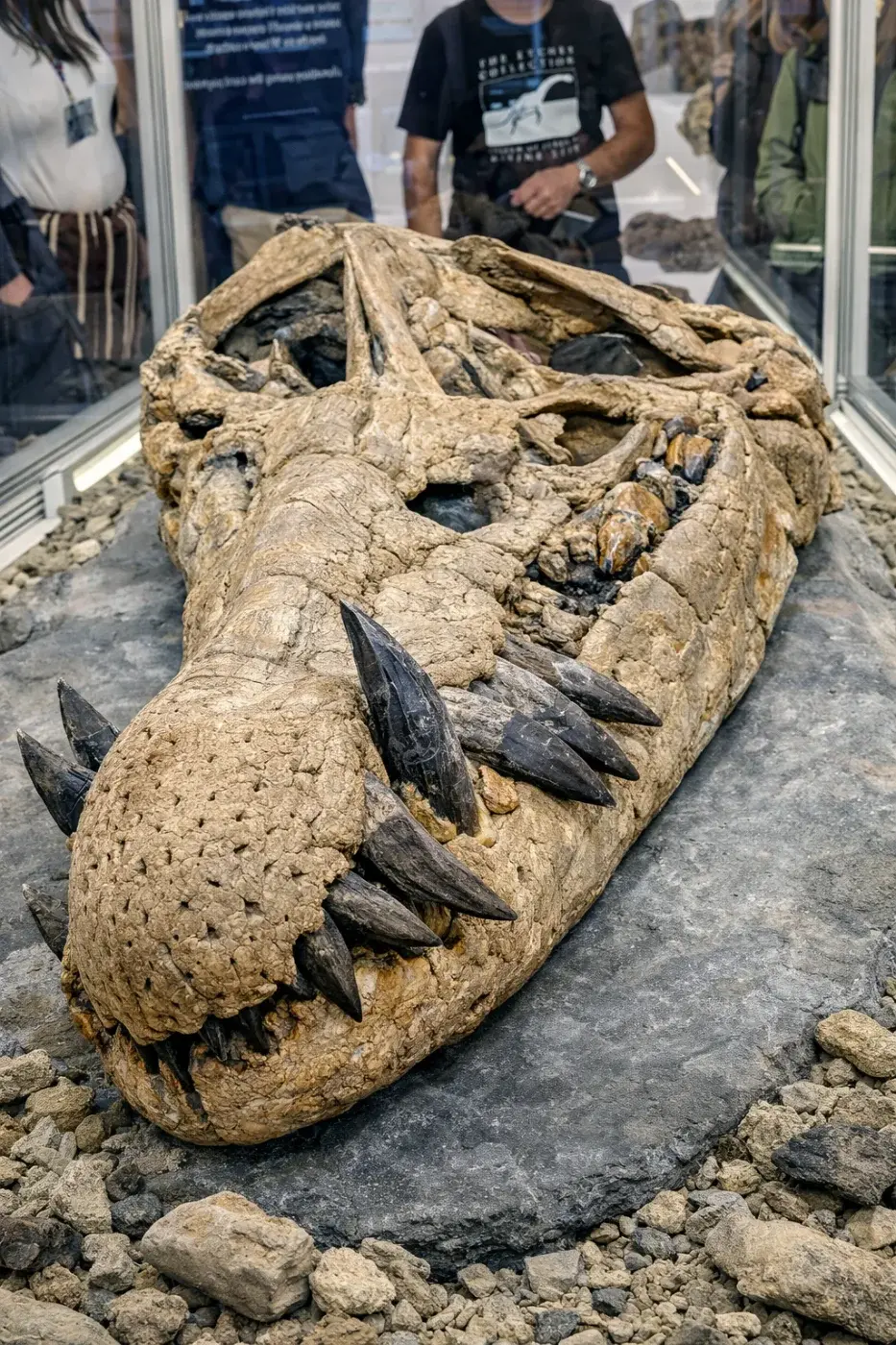 ที่ทำให้ทุกคนตื่นเต้นสุดๆ คือกะโหลกชิ้นนี้ ยาวประมาณ 2 เมตร และถือว่าเป็นหนึ่งในชิ้นที่ “สมบูรณ์มาก” เท่าที่เคยพบมาเลย เพราะปกติฟอสซิลกะโหลกสัตว์ทะเลมักจะเจอแบบแตกๆ แยกเป็นชิ้น หรือขาดหายบางส่วน แต่ของชิ้นนี้คือสุดมาก—โครงสร้าง ขากรรไกรล่างกับกะโหลกส่วนบนยังประกบกันแน่น เหมือนตอนมันยังมีชีวิตอยู่ แค่มีบิดเบี้ยวนิดหน่อยตามสภาพธรรมชาติ แต่กระดูกสำคัญๆ ยังอยู่ครบ ทำให้นักวิจัยตื่นเต้นกันเป็นพิเศษ เพราะมันช่วยให้ศึกษา “รูปทรงจริง” และกลไกการกัดได้ละเอียดขึ้นกว่าที่เคย