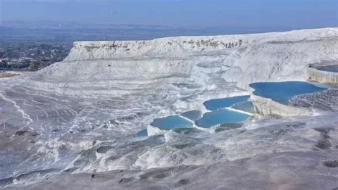 ทึ่งทั่วโลก : ความมหัศจรรย์ของ 'Pamukkale' สระน้ำสีฟ้าบนหน้าผาสีขาวโพลน "ปราสาทปุยฝ้ายแห่งตุรกี