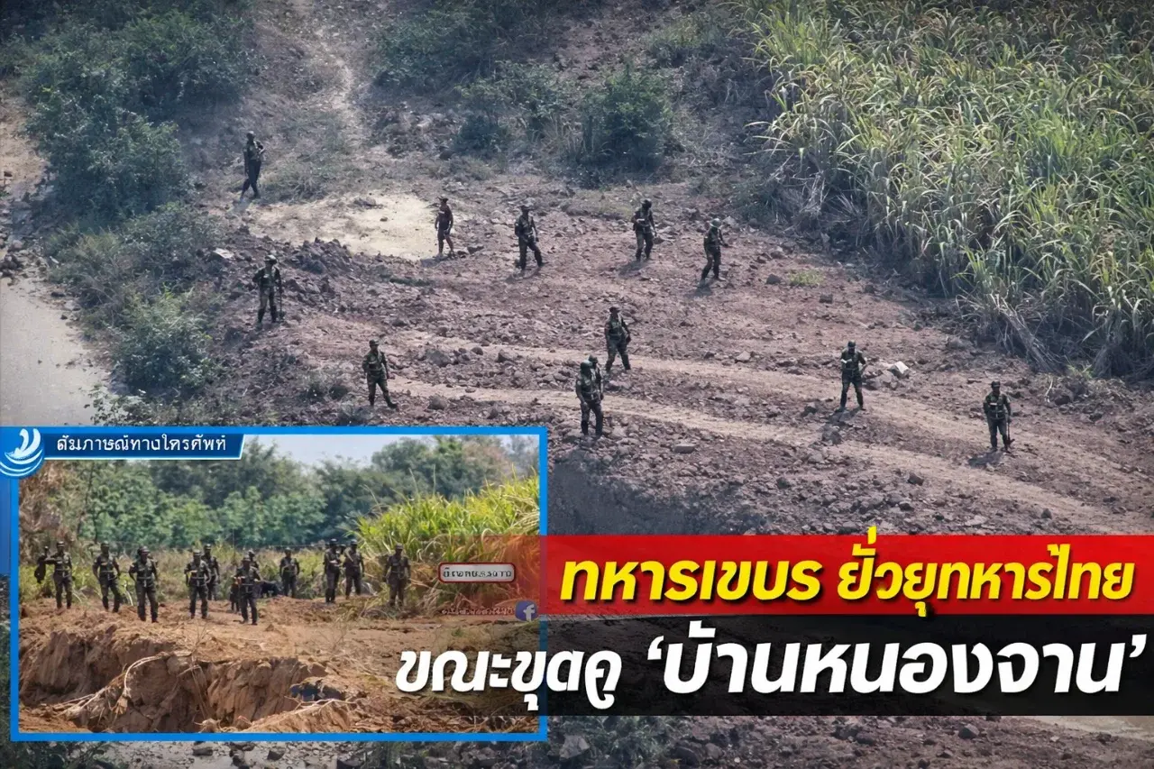 เขมรทนไม่ไหวแล้ว! 13 ทหารเดนตายพร้อมอาวุธครบมือ..ยั่วยุทหารไทยขณะขุดคู "บ้านหนองจาน" ตอนนี้เบื้องบนกัมพูชายังไม่สั่งให้ปะทะกับไทย แต่ระดับล่างเริ่มทนไม่ไหวกันแล้ว ใจมันอยากลุยและปะทะเต็มที่ เลยปรี่เข้ามาหาทหารไทยยั่วยุและพูดจาก่อกวนต่างๆ นานา ทางด้าน ทภ.1 ของไทยได้รีบประสานงานไปยัง ผบ.ทหารภูมิภาคที่ 5 ของกัมพูชา และเตือนให้ควบคุมกำลังพลของตัวเองให้ดีๆ หยุดแสดงพฤติกรรมยั่วยุแบบนี้ก่อนที่จะบานปลายไปกันใหญ่