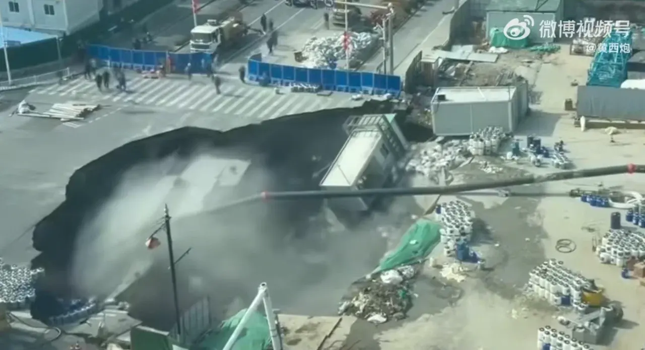 จากภาพวิดีโอในที่เกิดเหตุ ขณะนั้นพื้นถนนบริเวณก่อสร้างทรุดตัวลงอย่างกะทันหัน คนงานจำนวนมากต่างรีบวิ่งหลบหนี ต่อมาพื้นที่ยุบตัวกลายเป็นหลุมลึก เทียบเท่าความสูงหลายชั้น อาคาร สิ่งปลูกสร้างชั่วคราวของโครงการที่อยู่ด้านข้างก็ทรุดตกลงไปในหลุมด้วย ส่งผลให้ถนนชีซินทรุดหายไปเกือบครึ่งหนึ่ง หลังฝุ่นควันจางลง พบว่า "มีท่อสาธารณูปโภคใต้ดิน ได้รับความเสียหาย และ มีน้ำพุ่งออกจากท่อไหล ลงสู่หลุมยุบอย่างต่อเนื่อง"
