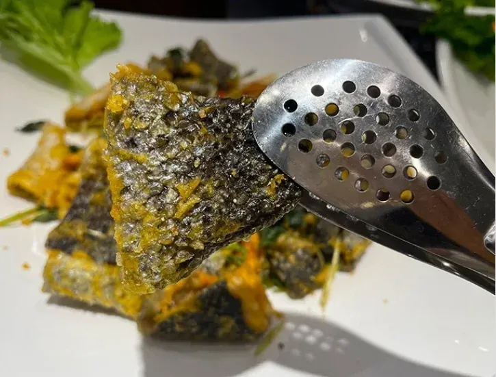2. หนังปลา : แหล่งคอลลาเจนธรรมชาติ หนังปลามักถูกลอกทิ้ง เพราะกังวลเรื่องกลิ่นคาวหรือไขมัน แต่แท้จริงแล้ว ส่วนนี้อุดมด้วยคอลลาเจน โปรตีน และกรดไขมันที่เป็นประโยชน์ คอลลาเจนจากหนังปลา ยังดูดซึมได้ง่ายกว่าหลายแหล่ง ช่วยเสริมความยืดหยุ่นของผิว และ ดีต่อระบบกระดูกและข้อต่อ ซึ่งเมื่อนำไปทอดกรอบหรือต้มซุป หนังปลาสามารถกลายเป็นเมนูที่น่ารับประทานได้ หากทำความสะอาดอย่างพิถีพิถัน