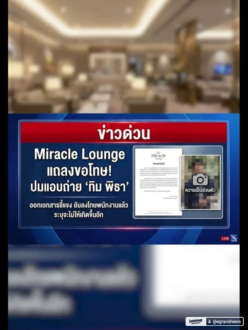 จากกรณีดราม่าภาพแอบถ่าย คุณทิม พิธา ขณะใช้บริการที่สนามบิน ล่าสุดทาง Miracle Lounge (มิลาเคิล เล้าจ์) ไม่นิ่งนอนใจ ออกแถลงการณ์ชี้แจงและขอโทษอย่างเป็นทางการ