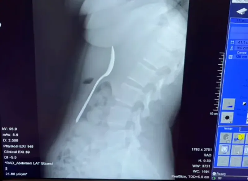 หลังเกิดเหตุ เธอไม่กล้าบอกแฟนหนุ่มในทันทีเพราะความอับอาย จนกระทั่งหลังมื้อค่ำ อาการเริ่มแย่ลงเรื่อยๆ เธอจึงถูกส่งตัวไปยังโรงพยาบาล แพทย์ถึงกับตะลึงเมื่อเห็นภาพเอกซเรย์ เพราะช้อนมีขนาดใหญ่เกินกว่าจะขับถ่ายออกมาเองตามธรรมชาติได้ เธอต้องรอคิวทำส่องกล้องนานถึง 2 วัน ซึ่งในช่วงเวลานั้นเธอยังรู้สึกได้ว่าช้อนเคลื่อนที่ไปมาอยู่แถวซี่โครง สร้างความเจ็บปวดและทรมานเป็นอย่างมาก