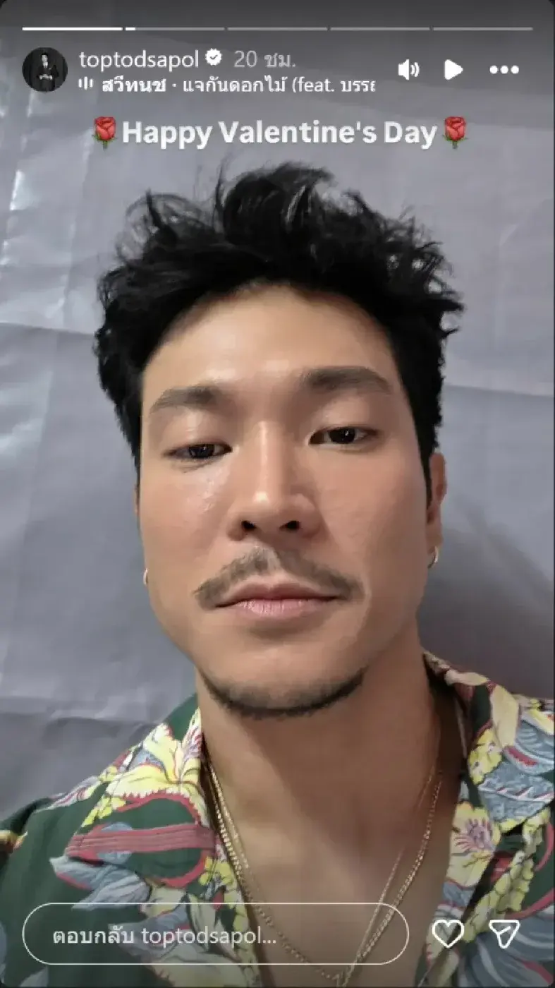 "ท็อป ทศพล" โพสต์สตอรี่รับวันวาเลนไทน์ หลังจาก "ก้อย-ทิม" เปิดตัวคบกันอย่างเป็นทางการ ทำให้แฟนๆ ส่งกำลังใจให้เขา