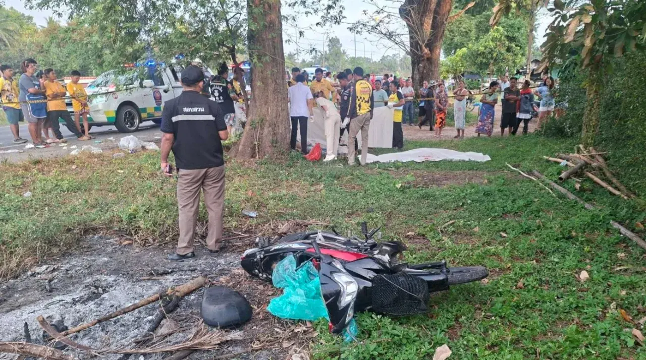 เมื่อเช้าวันที่ 15 กุมภาพันธ์ 2569 ตำรวจ สภ.เฉลิมพระเกียรติ จ.นครศรีธรรมราช ได้รับแจ้งอุบัติเหตุรถจักรยานยนต์เสียหลักชนต้นมะขามริมถนนสาย 408 นครศรี - หัวไทร หมู่ 4 ต.ดอนตรอ อ.เฉลิมพระเกียรติ จึงพร้อมด้วยแพทย์เวรโรงพยาบาลเฉลิมพระเกียรติ และเจ้าหน้าที่มูลนิธิใต้เต็กตึ๊ง รีบรุดไปตรวจสอบ
