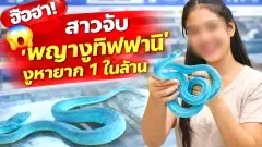 ชาวบ้านแห่ดู หลังหญิงไทยจับงูสีน้ำเงินประหลาดได้ตัวหนึ่ง