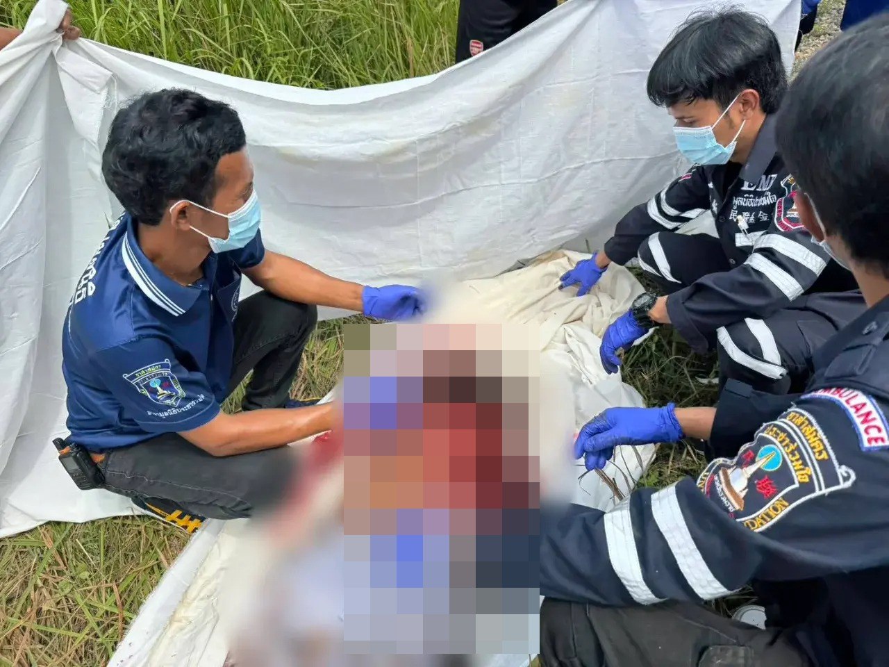 ใบหน้าเละ ศีรษะขาดกระเด็นหลุดจากคอกระเด็นตกอยู่บริเวณพงหญ้าริมทางรถไฟอย่างสยดสยองในชุดนุ่งกางเกงยีนส์ขาสั้นสีน้ำเงิน สวมเสื้อสีน้ำเงิน นอกจากนี้ใต้ตู้โบกี้พบช่อดอกไม้สีดำ 1 ช่อเกี่ยวติดกับตัวรถ จึงถ่ายภาพที่เกิดเหตุไว้เป็นหลักฐานอย่างละเอียด