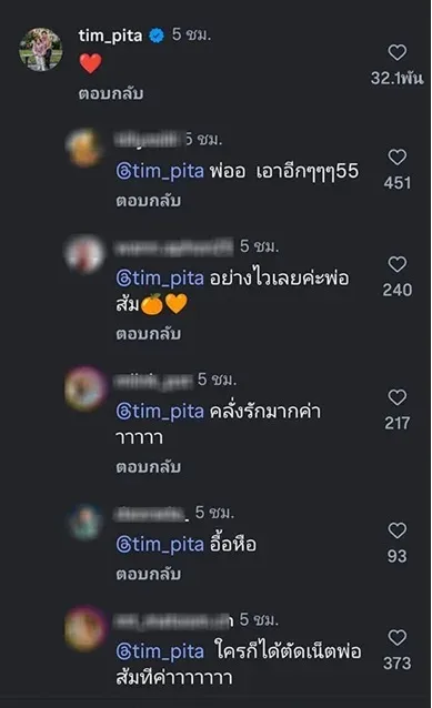 เรียกว่าตั้งแต่เปิดตัวว่ากำลังคบกัน ก็มีภาพแชร์ว่อนโลกโซเชียลทั้งรูปครอบครัว "ทิม พิธา" ได้เจอกับแม่ของก้อยแล้ว และทาง "ก้อย อรัชพร" ก็ได้เจอกับลูกสาวสุดที่รักของ "ทิม พิธา" แล้วเช่นกัน บอกเลยรักครั้งนี้ลงตัวสุดๆ และน่าจะหยุดลงที่การแต่งงานในไม่ช้า ทั้งนี้ช็อตหวานก่อนหน้าบอกเลยว่าไม่พูดถึงไม่ได้เลยจริงๆ กับช็อตมาสก์หน้าก่อนนอนของทั้งคู่ และภาพล่าสุดที่ สาวก้อย ได้ลงในไอจีสตอรี่กับช็อตที่ หนุ่มพิธา ดมผมของสาวก้อย บอกเลยทำเอาหลายคนฟินกระจาย พ่ออะไรจะรักกันปานกลืนกินขนาดนั้น ใจคอจะไม่สงสารสาวๆ ที่ยังเป็นโสด หรือเคยอกหักมาแล้วบ้างหรอ เค้ารอพ่ออยู่แต่ดันชิงเปิดตัวซ่ะก่อน โพสต์นี้บอกเลยคนโสดตายเรียบจ้า
