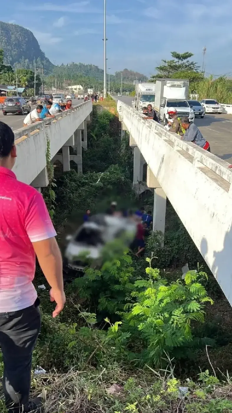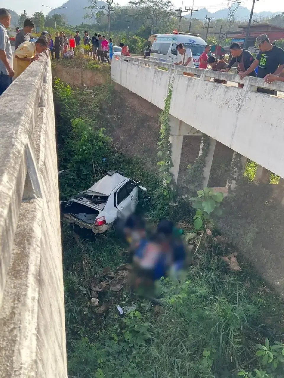 สาวขับเก๋งเสียหลักหลุดโค้งสะพาน หน้า รร.บ้านตาขุน เสียชีวิต 1 ราย