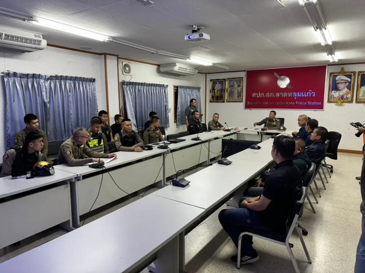 เมื่อเวลา 01.00 น. วันที่ 18 กุมภาพันธ์ 2569 พล.ต.ต.พีรพล โชติกเสถียร ผู้บังคับการ ตำรวจภูธรจังหวัดปทุมธานี เป็นประธานประชุมเร่งรัดติดตามความคืบหน้าคดี ก่อนปล่อยแถวเจ้าหน้าที่ออกปฏิบัติการค้นหาตัว **นายนพรัตน์ จีนโต หรือ “แอล”** ผู้ต้องหาตามหมายจับที่ 86/2569