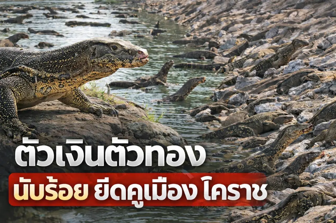 โคราชสะเทือน! ตัวเงินตัวทองนับร้อยยึดคูเมือง เดินกลางตลาดประตูผี ชาวบ้านผวาหนัก วอนรัฐเร่งจัดการก่อนบานปลาย