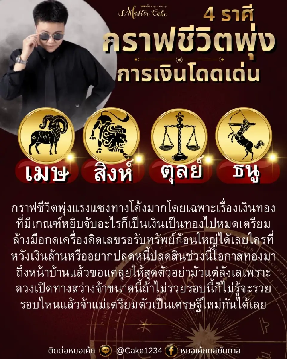 หมอเค้กได้ทำนายดวง 4 ราศีที่มีกราฟชีวิตพุ่งแรง โดยเฉพาะเรื่องการเงิน มีเกณฑ์ที่จะได้รับทรัพย์ก้อนใหญ่ เตรียมตัวรับโชคได้เลย