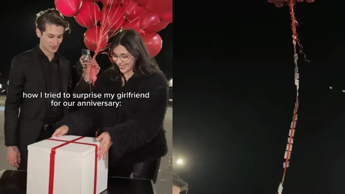 เหตุการณ์สุดช็อกนี้เกิดขึ้นกับ "ฮโยก้า" (Hyoga) อินฟลูเอนเซอร์ชาวเยอรมันที่มีผู้ติดตามหลักล้าน ในโอกาสฉลองวันครบรอบรัก เขาตัดสินใจทุ่มทุนสร้างด้วยกล่องของขวัญขนาดยักษ์ ภายในบรรจุลูกโป่งอัดแก๊สที่ผูกติดกับธนบัตรเงินสดรวมมูลค่ากว่า 2,000 ดอลลาร์สหรัฐ หรือประมาณ 70,000 บาท เพื่อให้ลอยขึ้นมาอย่างสวยงามต่อหน้าแฟนสาว