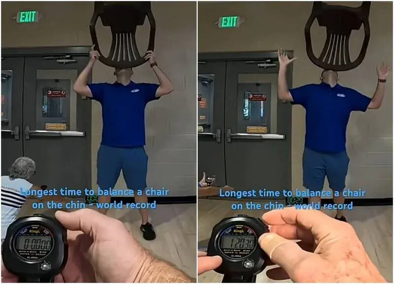 ทวงคืนบัลลังก์เจ้าแห่งสมดุล! ชายอเมริกันโชว์เหนือ ใช้คางวางเก้าอี้นานกว่า 1 ชม.