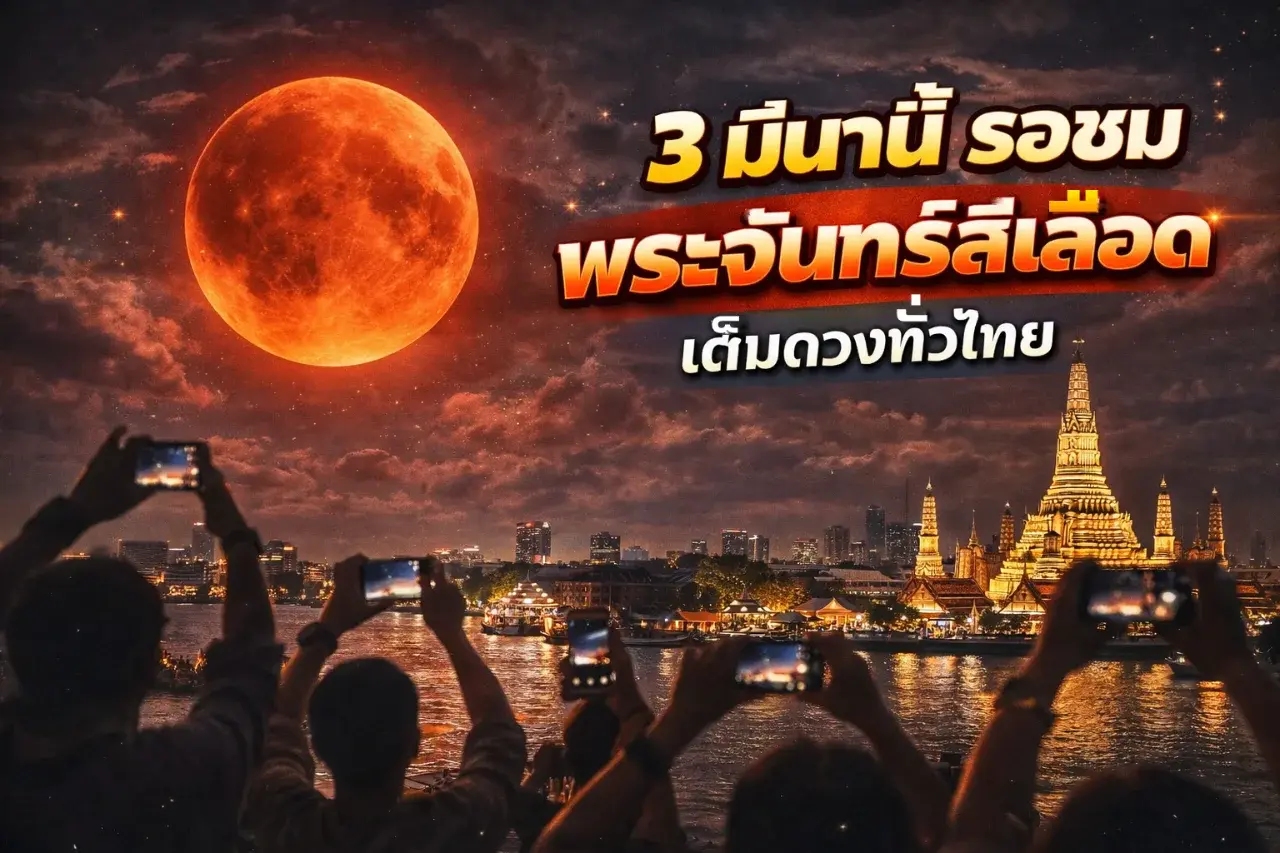 เพื่อนๆ ครับ ปักหมุดปฏิทินรอกันไว้ได้เลยนะ เพราะวันที่ 3 มีนาคม 2569 นี้ จะมีปรากฏการณ์จันทรุปราคาเต็มดวงที่เป็นไฮไลต์เด็ดของปีเลยล่ะ ความพิเศษคือรอบนี้ตรงกับวันมาฆบูชาพอดีเป๊ะ ทำให้เราจะได้เห็นดวงจันทร์สีแดงอิฐหรือ Blood Moon ลอยเด่นอยู่บนฟ้าไทยช่วงหัวค่ำ ซึ่งพวกเราสามารถดูได้ด้วยตาเปล่าเลยนะ