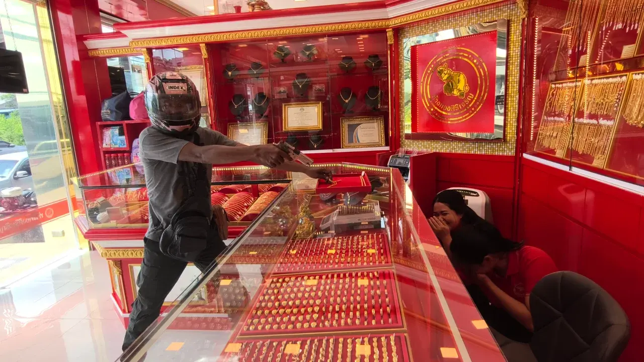 ตำรวจเมืองคอน ซักซ้อมแผนเผชิญเหตุเสหมือนจริง 2 คนร้ายควงปืนบุกชิงทรัพย์ร้านทอง