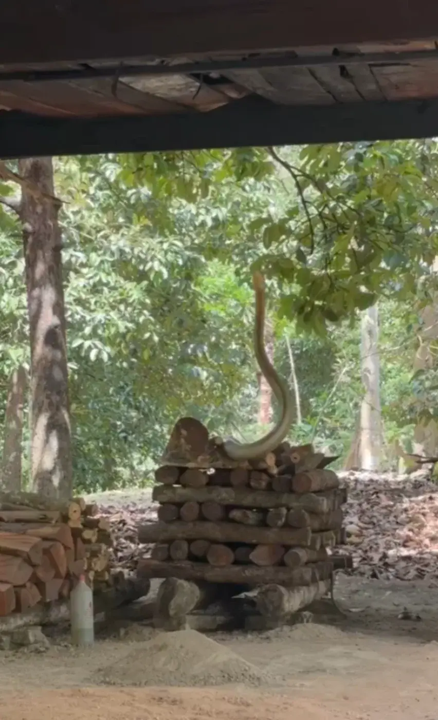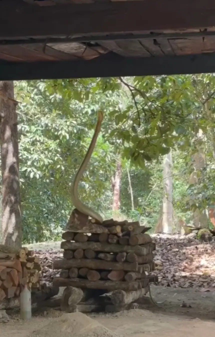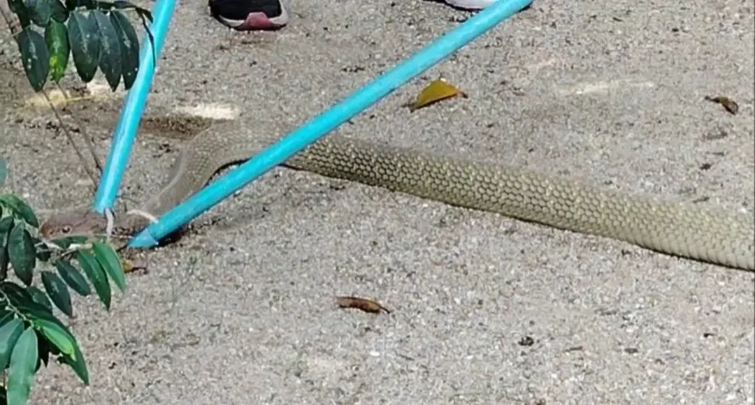 สอบถามนางจิณ เล่าว่า ช่วงเช้านั่งคุยกับเพื่อนบ้านหน้าบ้าน ระหว่างนั้นได้ยินเสียงเหมือนลูกมะพร้าวตกจากต้นลงพื้น จึงเข้าไปในสวนเพื่อเก็บลูกมะพร้าว แต่ต้องตกใจตื่น เพราะเจองูจงอาขนาดใหญ่ยาวไม่ต่ำกว่า 4 เมตร กำลังเกี้