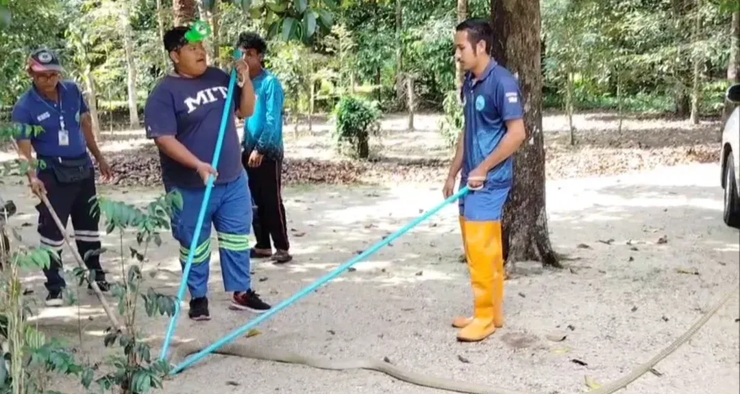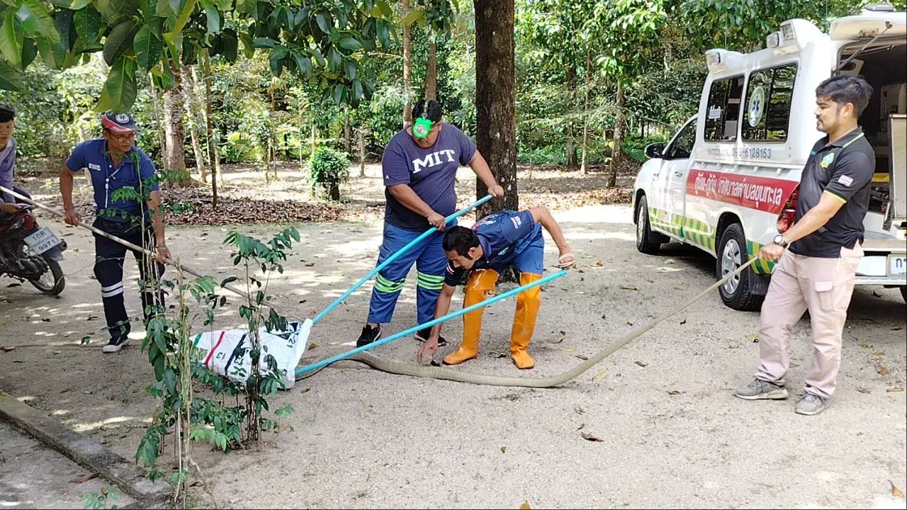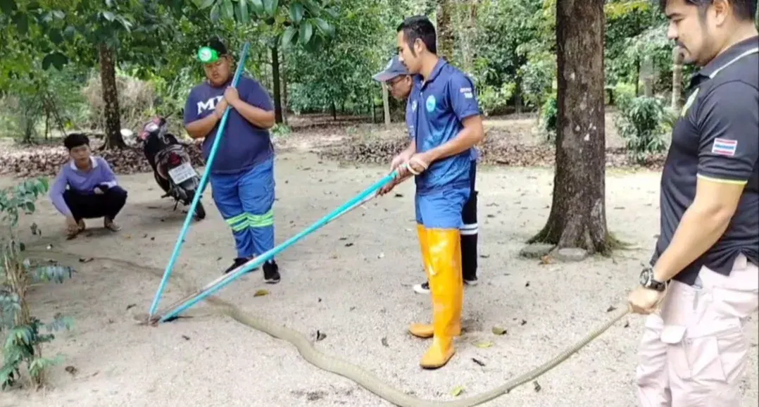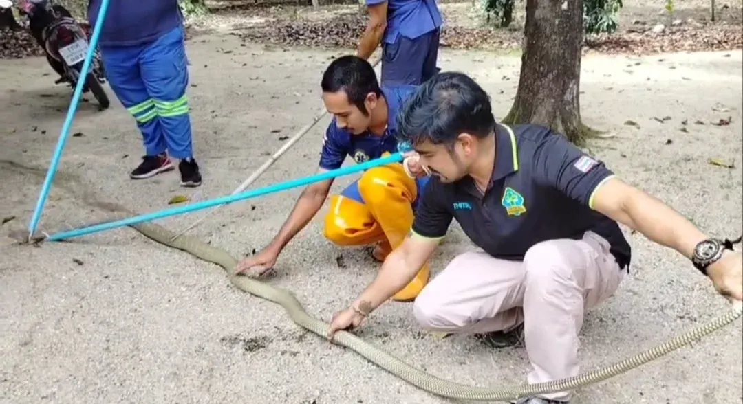 เมื่อช่วงสายวันที่ 20 กุมภาพันธ์ 2569 เจ้าหน้าที่กู้ชีพเทศบาลตำบลขุนทะเล อ.ลานสกา จ.นครศรีธรรมราช รับแจ้งขอความช่วยเหลือจับงูจงอางขนาดใหญ่ 2 ตัว ภายในสวน หลังบ้านเลขที่ 7 หมู่ 4 ต.ขุนทะเล อ.ลานสกา จ.นครศรีธรรมราช จึงรีบเดินทางไปตรวจสอบ เมื่อถึงบ้านเกิดเหตุอยู่กลางสวนพบนางจิณ อายุ 78 ปี เจ้าของบ้าน และคนในครอบครัว รวมทั้งเพื่อนบ้าน ยืนรอเจ้าหน้าที่อยู่หน้าบ้าน ก่อนให้ข้อมูลว่า สวนหลังบ้านมีงูจงอางยาวไม่ต่ำกว่า 4 เมตร จำนวน 2 ตัว กอดรัดฟันเหวี่ยงเกี้ยวพาราศีกันใต้ต้นมะพร้าวอย่างเมามัน โดยไม่แคร์สายตามนุษย์ เจ้าหน้าทีจึงเข้าตรวจสอบในสวนอยู่นานประมาณ 30 นาที พบงูจงอางยาว 4 เมตร ซุกอยู่ในพงหญ้า จึงใช้บวงคล้องจับสำเร็จ ส่วนงูจงอางอีก 1 ตัว เจ้าหน้าที่ไม่พบ คาดว่าเลื้อยเข้าป่า ก่อนนำไปใส่กระสอบปล่อยป่าห่างไกล้บ้านเรือน