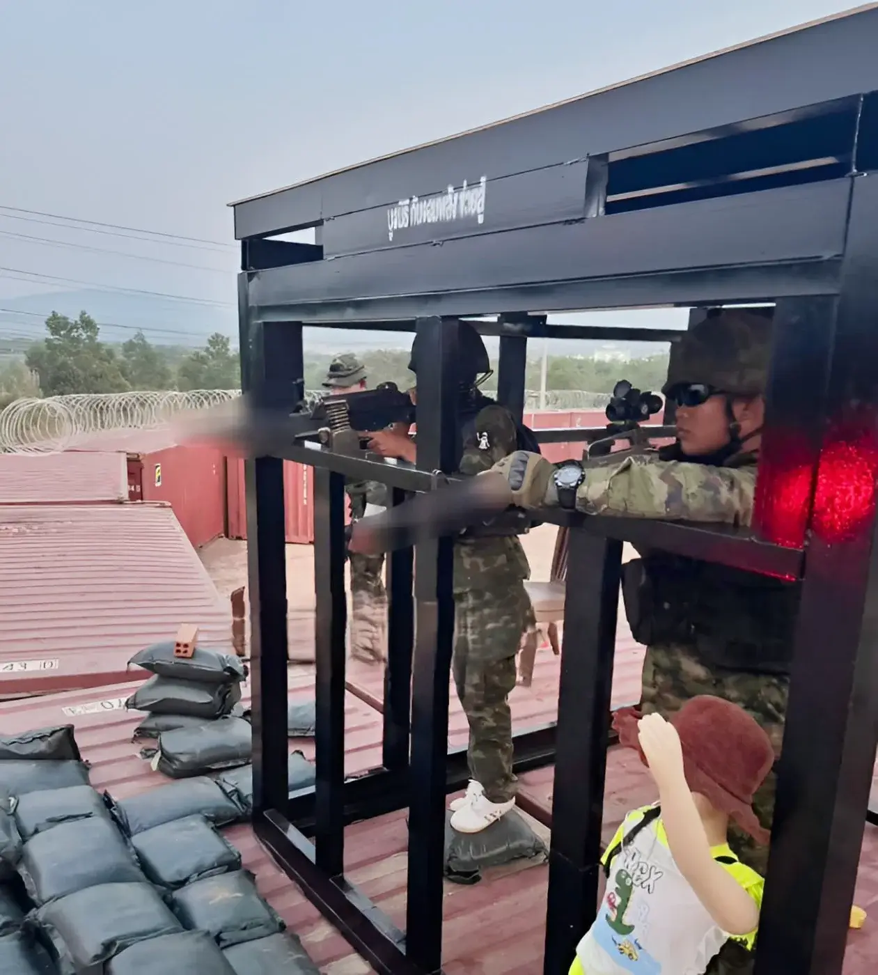 จากความเคลื่อนไหวที่เกิดขึ้น ทีมงานและเจ้าหน้าที่ทหารจึงเร่งดำเนินการติดตั้ง “บังเกอร์” บริเวณด้านบนของแนวตู้คอนเทนเนอร์ เพื่อใช้เป็นจุดตรวจการณ์และเพิ่มความปลอดภัยให้กับกำลังพลที่ปฏิบัติหน้าที่