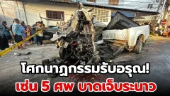 กระบะฝ่าไฟแดงสยอง! ชนสนั่นสี่แยกวัดจันทนาราม ดับ 5 ศพ เจ็บสาหัส 4 ราย