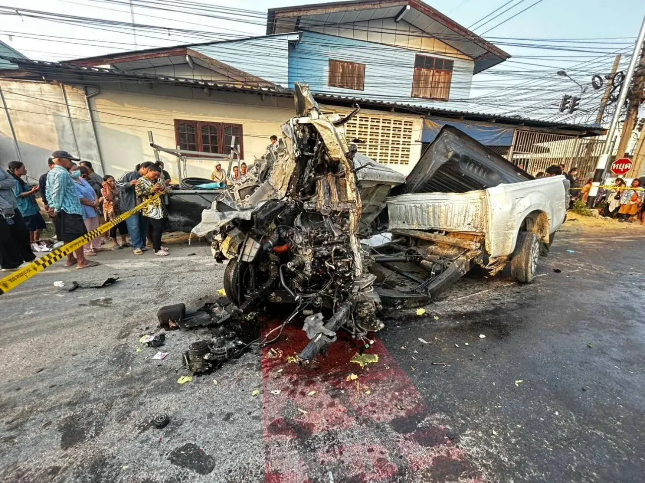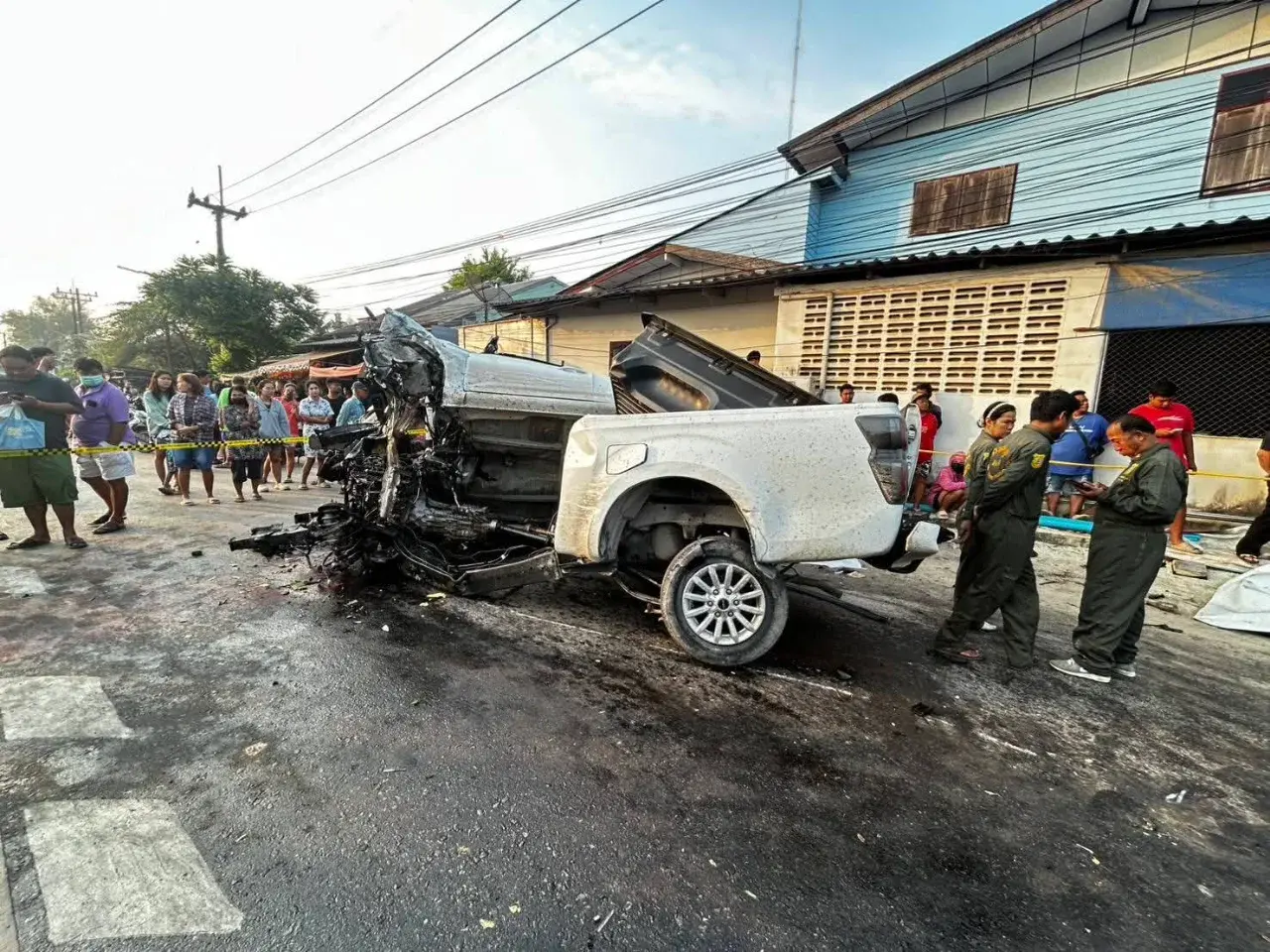 ชัยนาทโศกนาฏกรรมหมู่ รถกระบะบรรทุก 10 ชีวิต เสียหลักพุ่งชนป้ายหยุด ก่อนฝ่าไฟแดงชนเสาไฟฟ้าอย่างจัง รถพลิกคว่ำกลางสี่แยก เสียชีวิตรวม 5 ราย บาดเจ็บอีก 6 คน