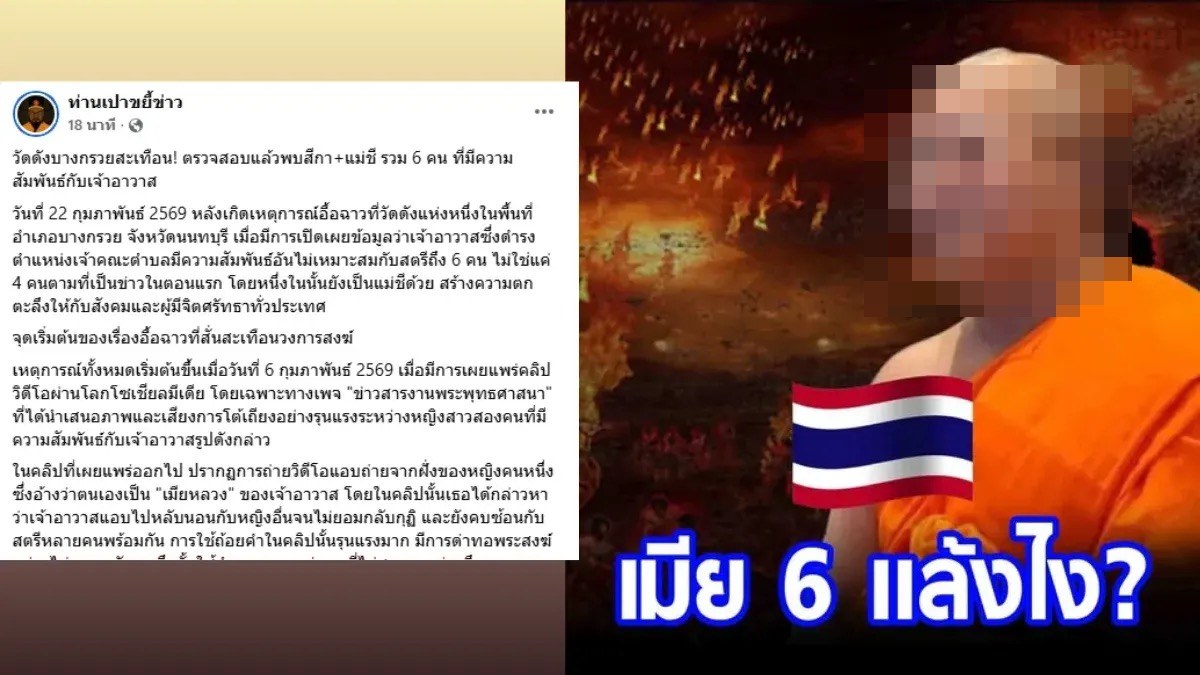 วงการสงฆ์ถึงขั้นสั่นสะเทือนเมื่อมีการเปิดเผยพฤติกรรมอื้อฉาวของเจ้าอาวาสวัดดังในอำเภอบางกรวย จังหวัดนนทบุรี ซึ่งดำรงตำแหน่งเป็นถึงเจ้าคณะตำบล หลังพบหลักฐานความสัมพันธ์เชิงชู้สาวกับสตรีถึง 6 ราย รวมถึงแม่ชีและพนักงานธนาคาร พร้อมทั้งมีการโอนเงินทำศัลยกรรมและส่งเสียเลี้ยงดูจนนำไปสู่การปะทะกันของเหล่าสีกาและการแฉข้อมูลผ่านสื่อโซเชียลมีเดีย
