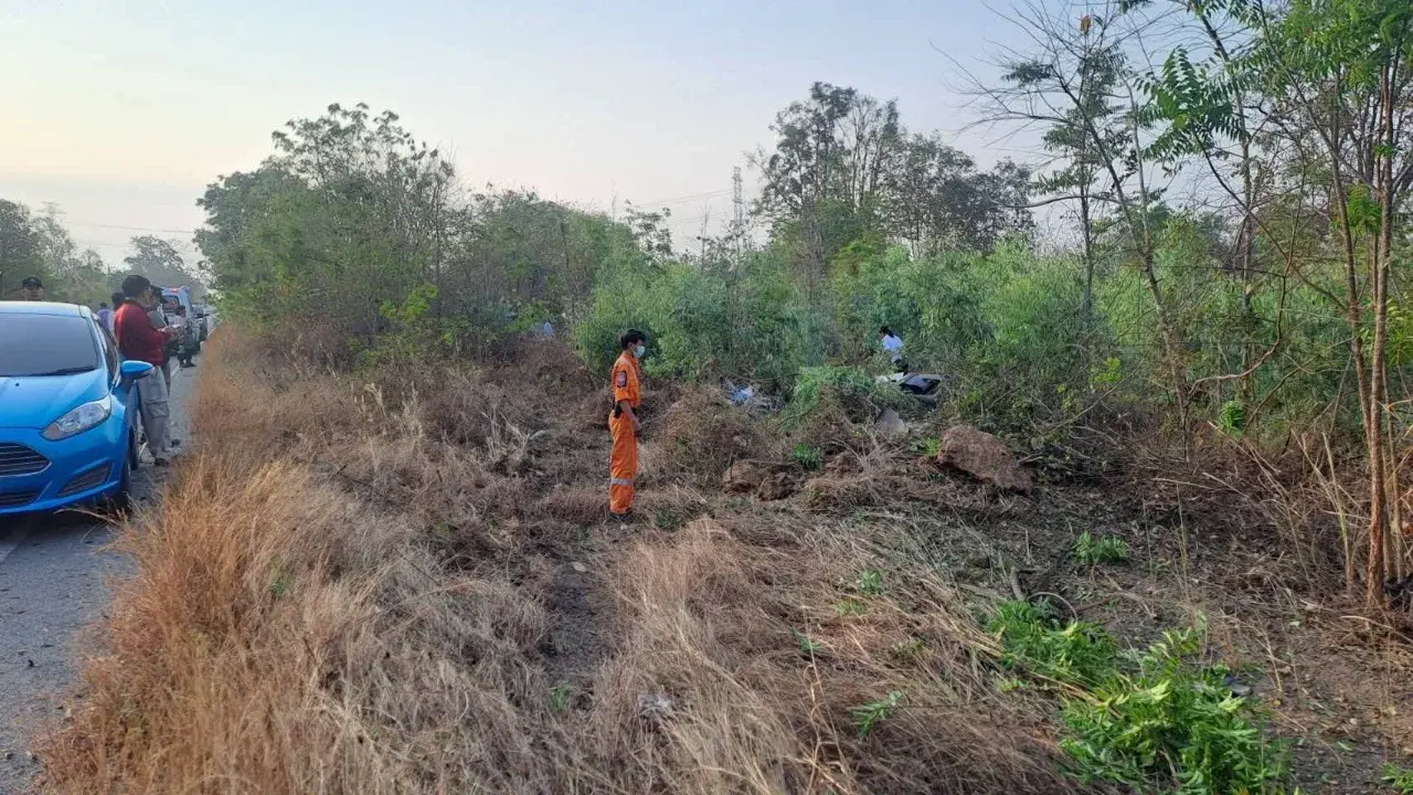 สลดโค้งมรณะ! กระบะเสียหลักพลิกคว่ำกระเด็นดับ 2 ศพ ที่ปากทางบ้านท่าเยี่ยม ขอนแก่น