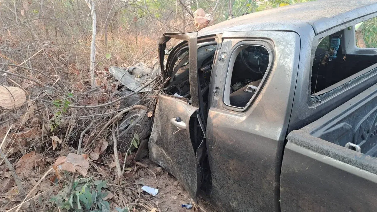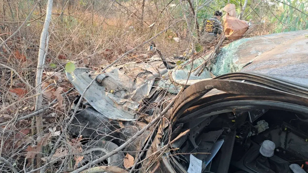 ที่เกิดเหตุพบรถยนต์กระบะยี่ห้อ Toyota สีเทา ทะเบียน ผก 830 สกลนคร สภาพพังเสียหายอย่างหนัก ตกอยู่ข้างทางฝั่งขวา ตัวรถบิดเบี้ยวจากแรงเหวี่ยง ภายในและรอบตัวรถพบร่างผู้เสียชีวิต 2 ราย กระเด็นออกนอกรถจากแรงกระแทก