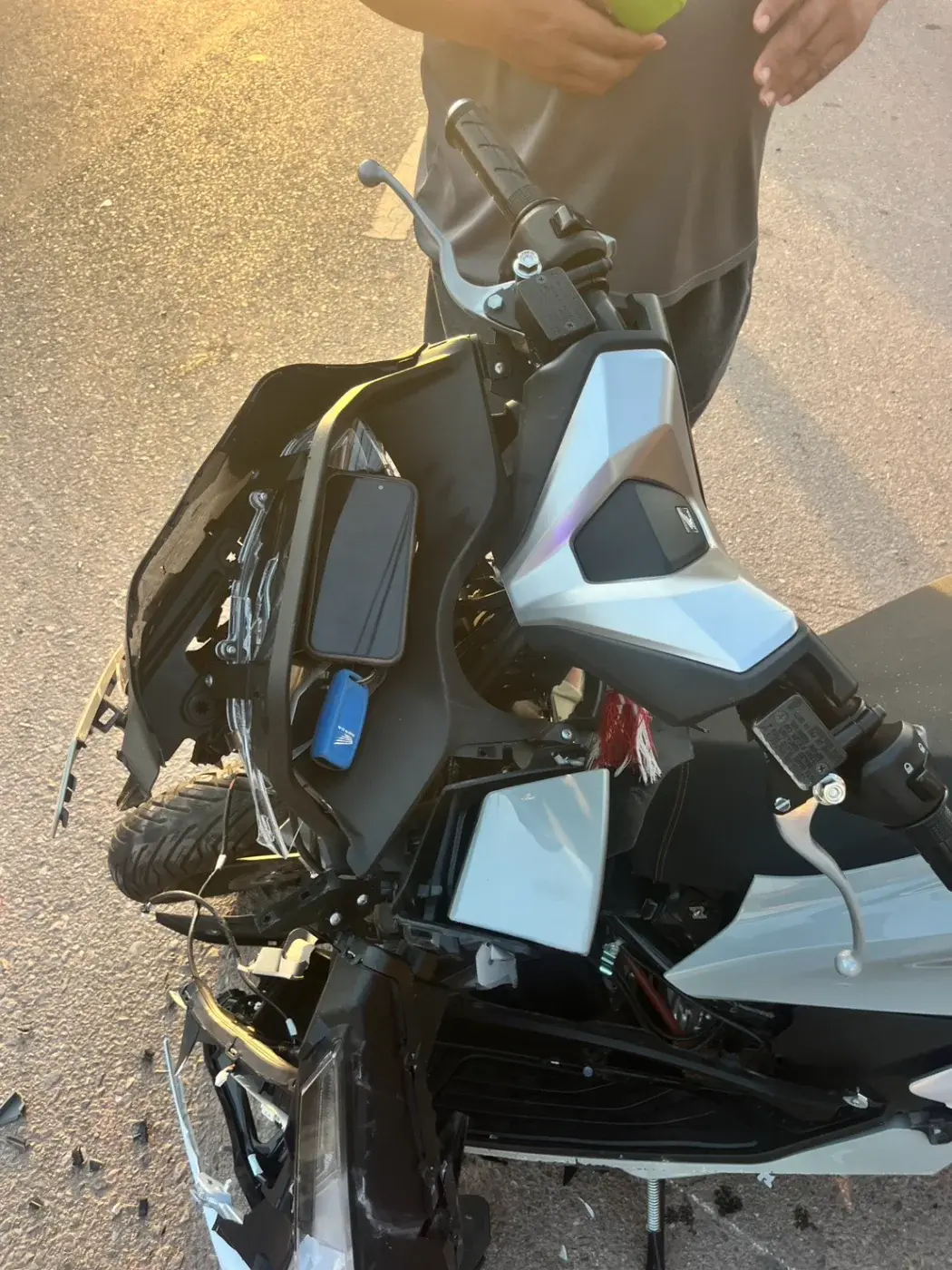 แรงกระแทกทำให้ผู้ขับขี่รถจักรยานยนต์ ซึ่งเป็นชาย 1 ราย ได้รับบาดเจ็บอาการสาหัส เจ้าหน้าที่กู้ชีพเร่งปฐมพยาบาลก่อนนำส่ง โรงพยาบาลสุราษฎร์ธานี อย่างเร่งด่วน ทราบชื่อภายหลังคือ นายธนกรณ์ พรหม...ต นักเรียนชั้นมัธยมศึกษาปีที่ 5 ของ โรงเรียนสุราษฎร์พิทยา โดยเพื่อนนักเรียนและอาจารย์ได้ประสานแจ้งครอบครัวรับทราบทันที
