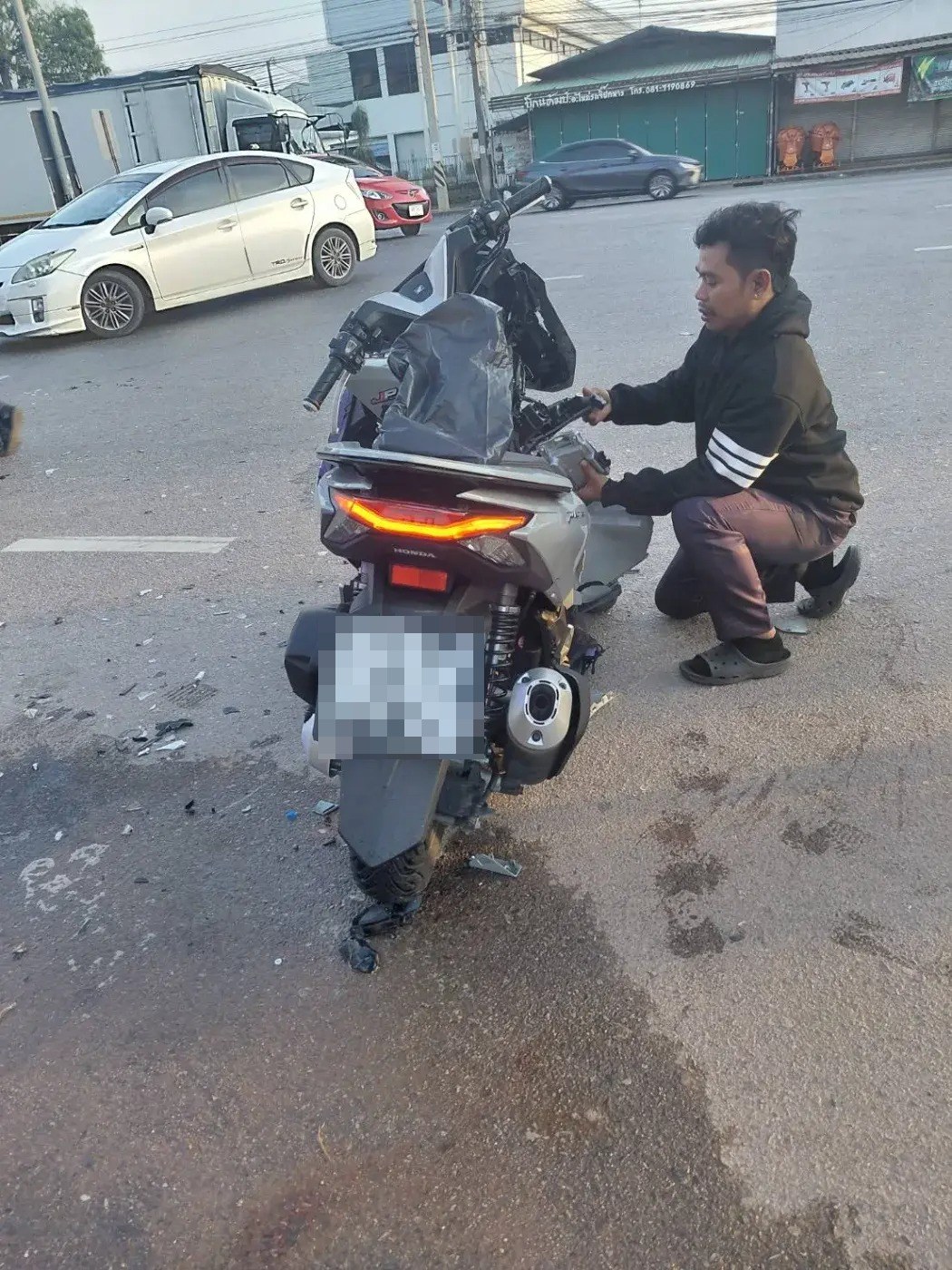 เมื่อถึงที่เกิดเหตุพบรถยนต์อเนกประสงค์ 7 ที่นั่ง ยี่ห้ออีซูซุ MU-7 สีขาว ทะเบียนกรุงเทพมหานคร สภาพด้านหน้ามีร่องรอยการชนอย่างชัดเจน ใกล้กันพบรถจักรยานยนต์ฮอนด้า PCX สีขาว ทะเบียนสุราษฎร์ธานี ล้มอยู่กลางถนนในสภาพเสียหายหนัก