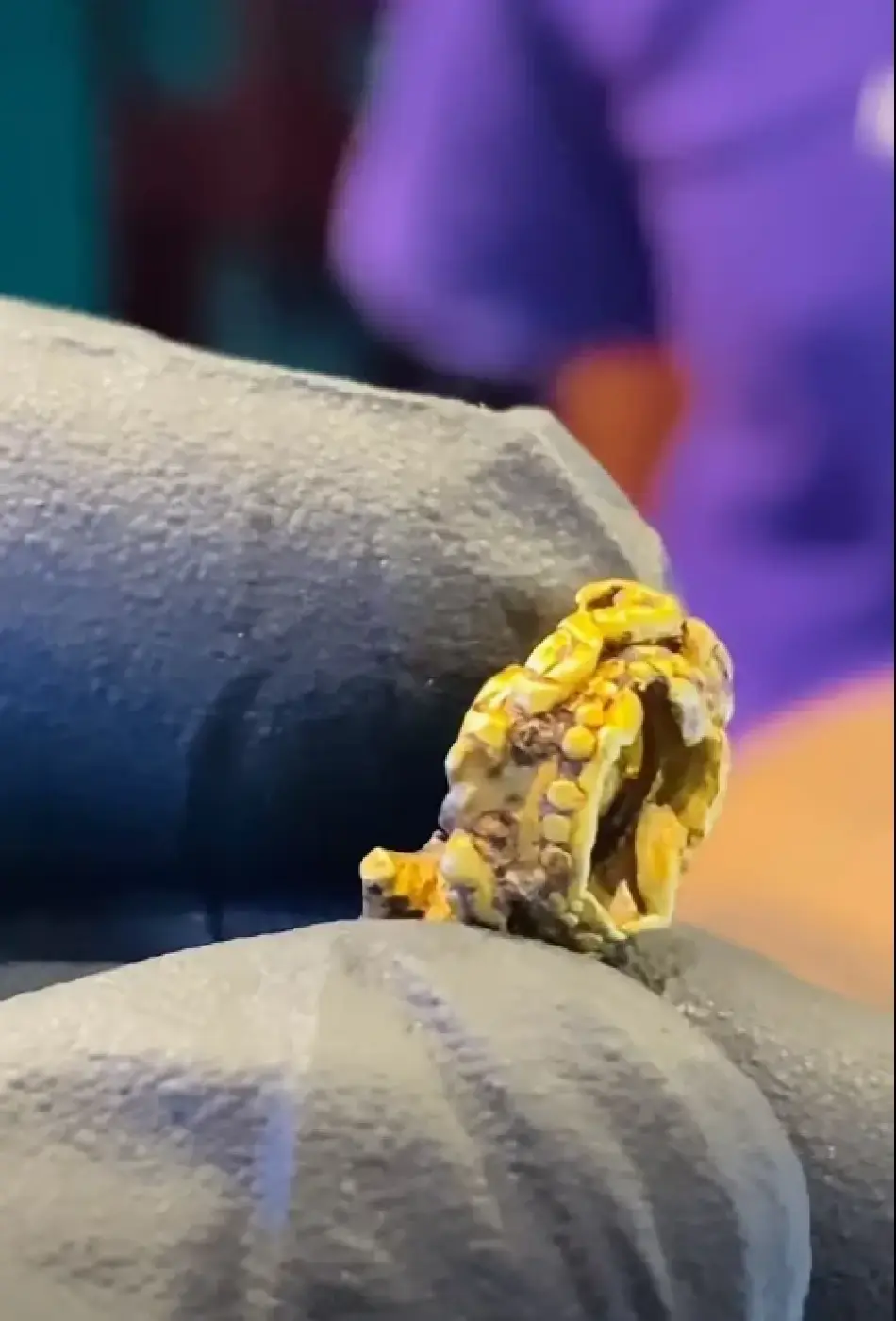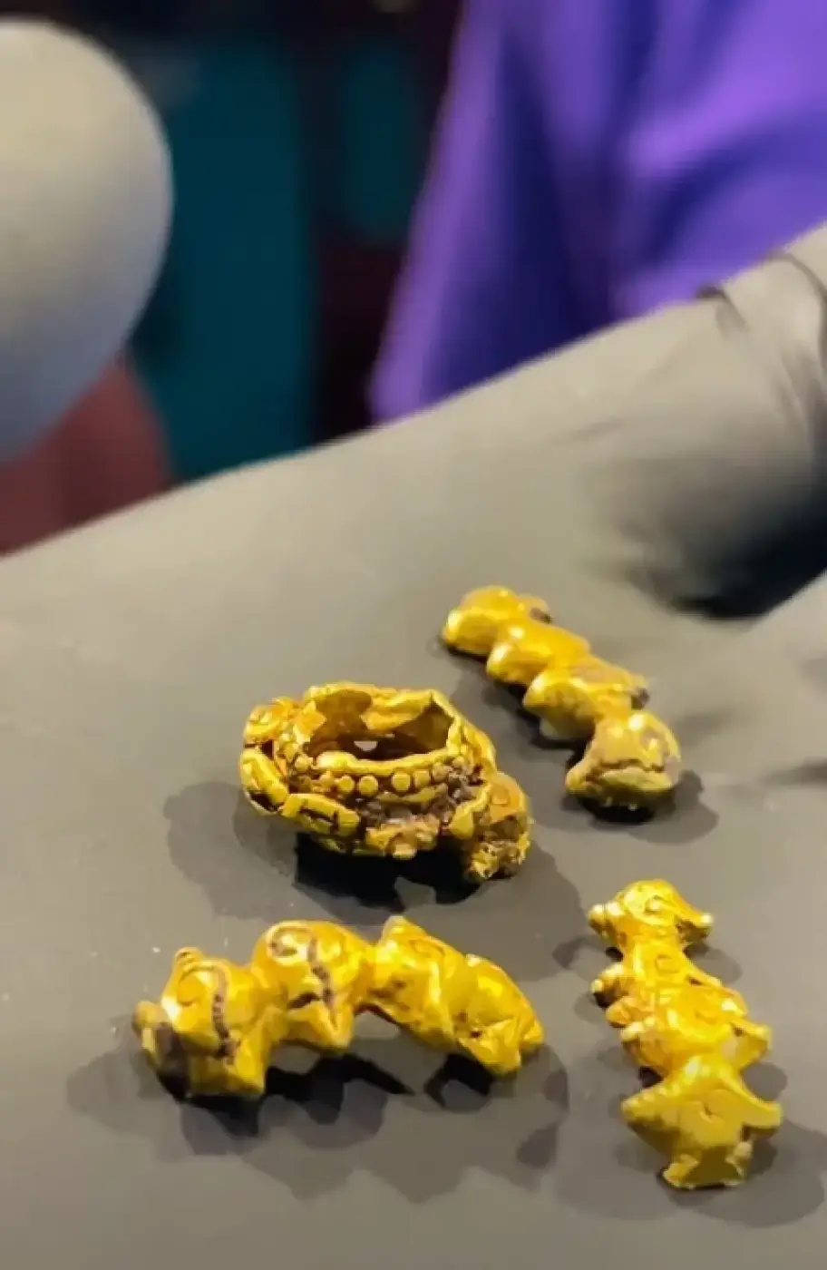 ช่างนะโมตรวจสอบและบอกว่าเศษทองนี้คล้ายหัวแหวนโบราณ หายาก และมีโอกาสเป็นทองสูง จากการใช้เครื่องเอกซเรย์พบว่าเป็นทอง 65% มีเหล็ก เงิน และทองแดงปนอยู่บ้าง