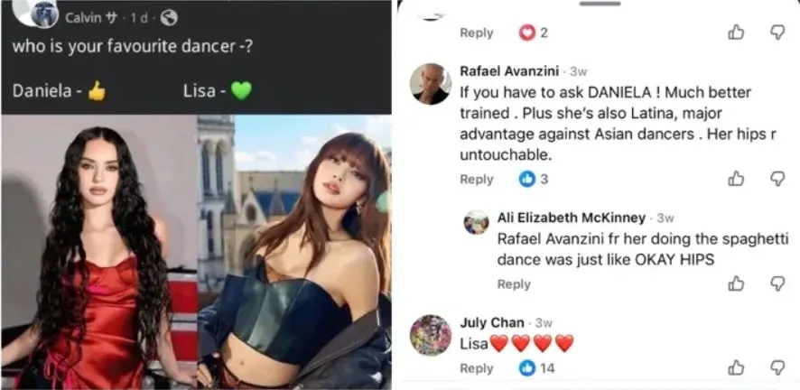 เมื่อมีแฟนคลับรายหนึ่งได้กล่าวหา "ดาเนียลา" กำลังเลียนแบบ "มานอน" และไม่มีทางที่จะเป็นเหมือน "มานอน" หรือ "ลิซ่า" ได้ ซึ่งทำเอา "ราฟาเอล" ถึงกับโต้กลับทันทีว่า "ดาเนียลา" ไม่จำเป็นต้องเหมือนใคร แต่อย่างไรก็ตาม ความไม่พอใจของเหล่าแฟนๆ ก็เริ่มปะทุขึ้นอีกครั้ง หลังมีการขุดคอมเมนต์เก่าๆ ที่ "ราฟาเอล" เคยโพสต์เปรียบเทียบระหว่าง "ดาเนียลา" กับ "ลิซ่า" โดยมีข้อความเชิงเหยียดเชื้อชาติด้วยว่า ดาเนียลา เธอฝึกมาดีกว่า และความเป็น “ลาตินา” ทำให้ได้เปรียบอยู่เหนือแดนเซอร์ชาวเอเชียทั้งหมด