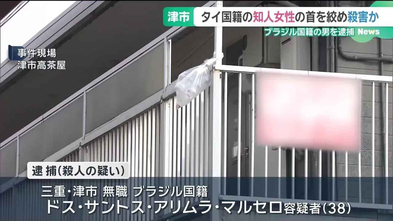 ที่เมืองสึ จังหวัดมิเอะ ประเทศญี่ปุ่น ได้มีการจับกุมชายสัญชาติบราซิล ในข้อหาฆาตกรรมหญิงสัญชาติไทย ภายในอพาร์ตเมนต์ของตนเอง