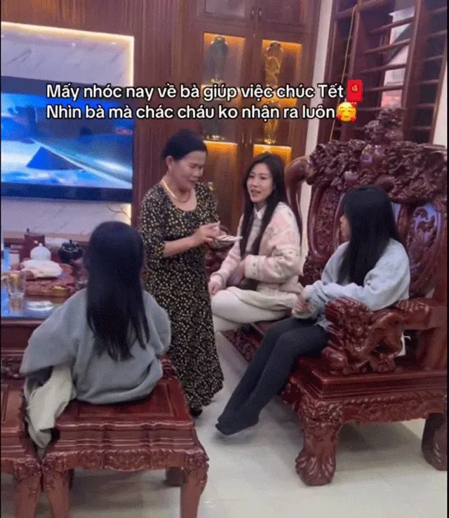 ถึงแม้จะรู้จักกันมานาน แต่เพิ่งในช่วงเทศกาลเต๊ตปีนี้เองที่ "ดิงห์ เตียน" ได้จัดเวลา พาครอบครัวไปอวยพรปีใหม่ที่บ้านของแม่บ้าน เมื่อ "ดิงห์ เตียน" และ ครอบครัวได้เห็นบ้านที่กว้างขวาง และ มีสิ่งอำนวยความสะดวกครบครัน เขาก็อดรู้สึกประหลาดใจไม่ได้... นอกจากนี้ เธอยังปรากฏตัวในชุดสุภาพเรียบร้อย แตกต่างจากภาพลักษณ์เรียบง่ายที่คุ้นเคย จนเด็กๆแทบจำไม่ได้ อีกทั้งยังเตรียมของขวัญปีใหม่ ไว้ต้อนรับพวกเขาอีกด้วย...