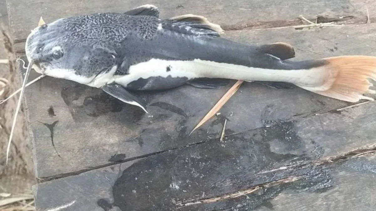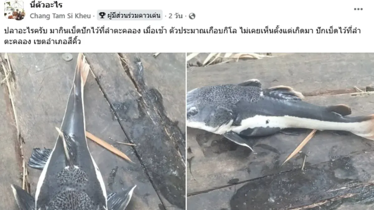 เรื่องราวนี้ถูกเปิดเผยเมื่อวันที่ 26 กุมภาพันธ์ 2569 ผ่านกลุ่มเฟซบุ๊กชื่อดัง "นี่ตัวอะไร" โดยผู้ใช้เฟซบุ๊กรายหนึ่งได้โพสต์ภาพปลาที่ตกได้จากลำตะคลอง มีน้ำหนักประมาณ 1 กิโลกรัม ลักษณะลำตัวยาว ผิวเรียบไร้เกล็ด ส่วนหัวแบนและมีหนวดยาวคล้ายปลาดุก แต่ที่สะดุดตาที่สุดคือหางสีส้มแดงสดตัดกับลำตัวสีเทาเข้มและแถบสีขาวข้างลำตัว ซึ่งสร้างความฉงนให้กับผู้พบเห็นเป็นอย่างมากเพราะไม่เหมือนปลาพื้นถิ่นที่เคยเจอ