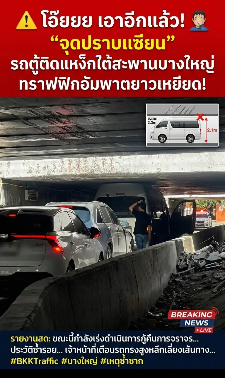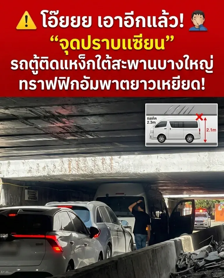 โอ๊ยยย เอาอีกแล้ว! 🤦♂️ จุดปราบเซียน รถตู้ติดแหง็กใต้สะพานกลับรถบางใหญ่ ทำจราจรอัมพาตยาว!