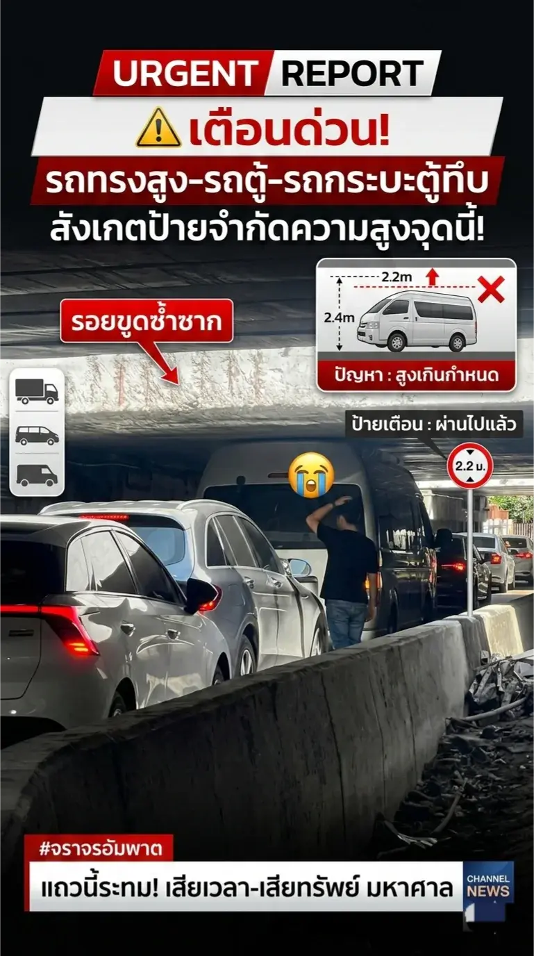 ฝากเตือนพี่ๆ คนขับรถทรงสูง รถตู้ รถกระบะตู้ทึบ สังเกตป้ายจำกัดความสูงก่อนลอดสะพานกันด้วยนะครับ จะได้ไม่เสียเวลาและเสียทรัพย์กันน้าา แถวนี้รถติดทีนึง ร้องกันระงม! 😭