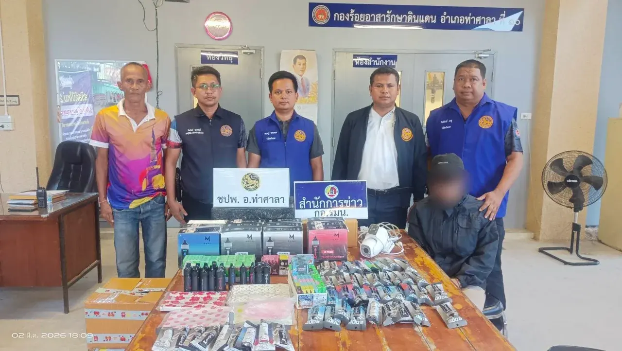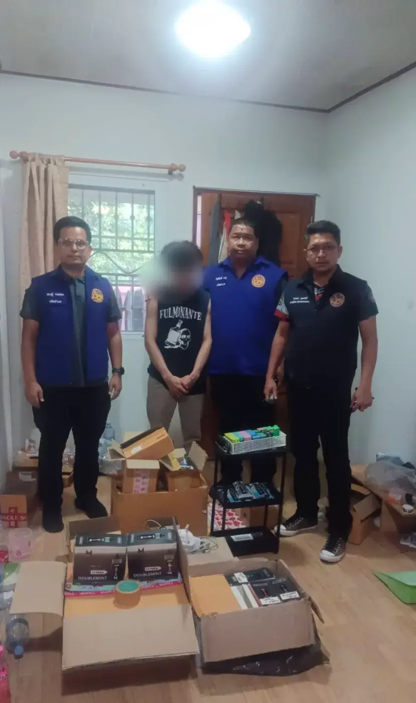 ฝ่ายปกครองอำเภอท่าศาลา เมืองคอน สายตาเหยี่ยว!กล่องบุหรี่ไฟฟ้าเกลื่อนหน้าบ้านเช่า บุกตรวจค้นเจอของกลางเพียบ