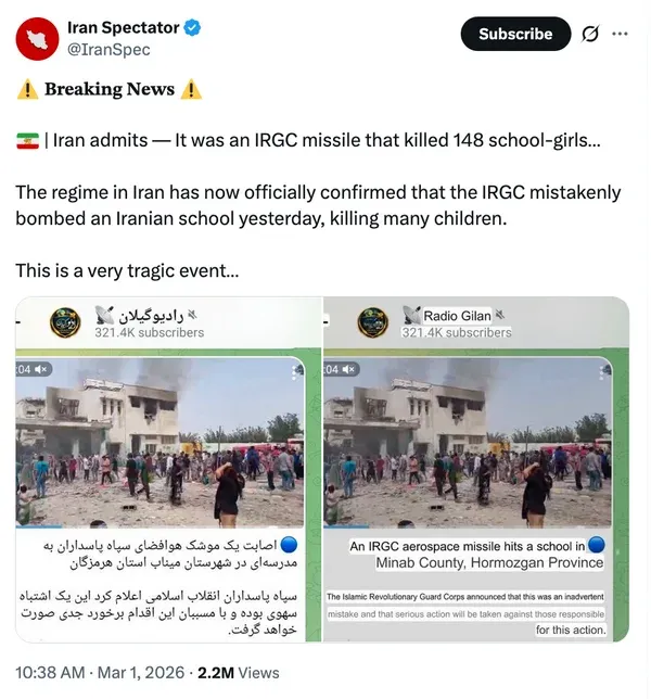 อ้างอิง : https://www.snopes.com/news/2026/03/03/iran-girls-school-missile-attack/