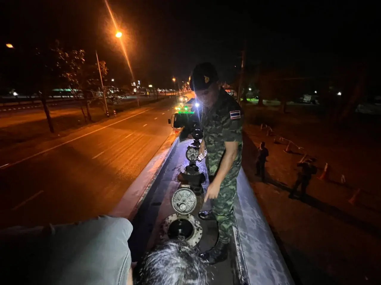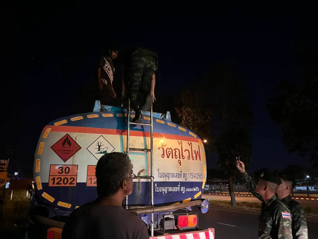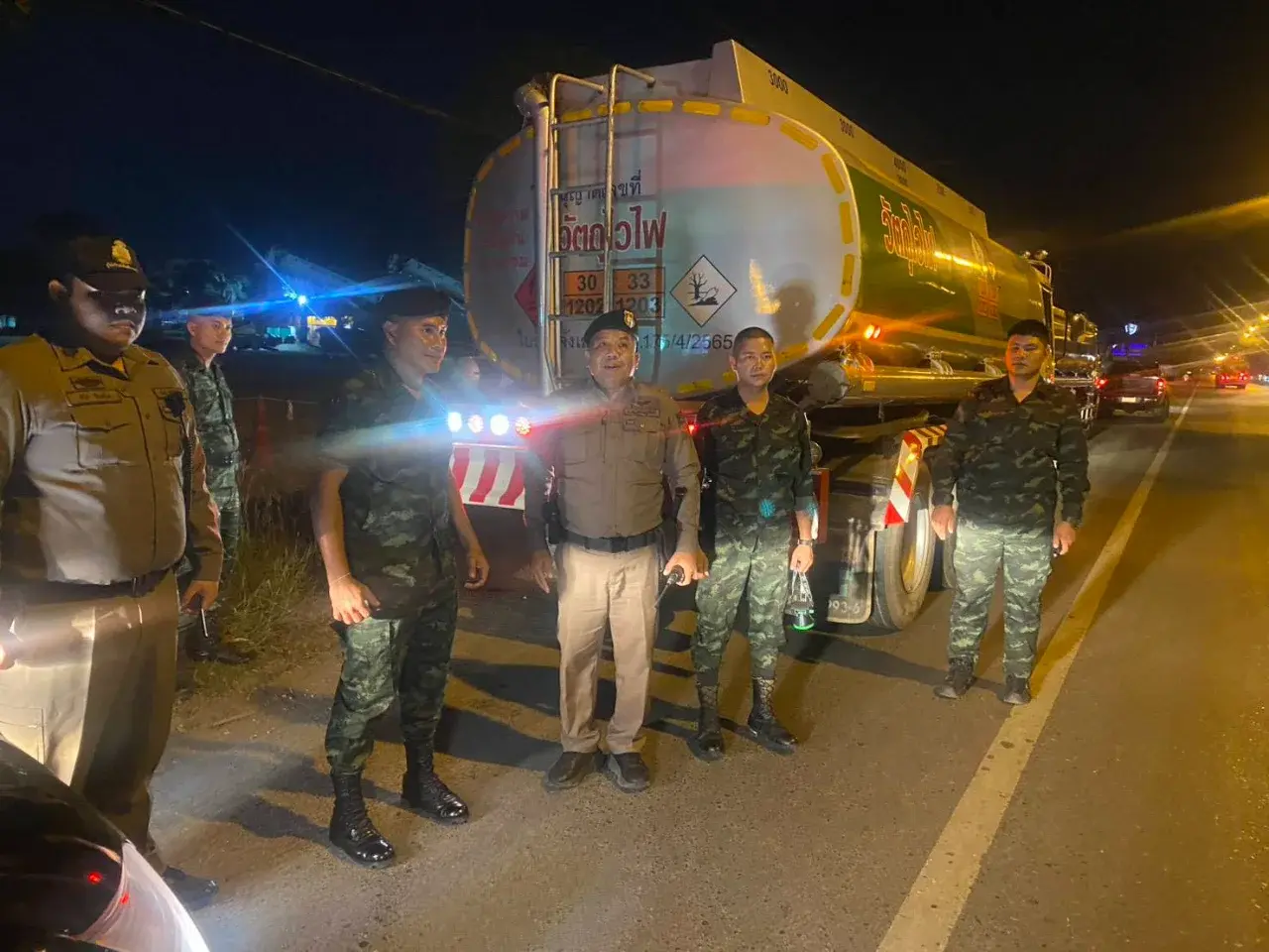เมื่อเวลา 21.30 น. วันที่ 3 มีนาคม 2569 ที่บริเวณถนนเลี่ยงเมือง อ.เมืองจสุราษฎร์ธานี กองบังคับการควบคุมการแก้ไขปัญหาภัยคุกคามด้านความมั่นคงรูปแบบใหม่ และปราบปรามภัยแทรกซ้อนในพื้นที่ 14 จังหวัดภาคใต้ กองทัพภาค 4 ได้เรียกตรวจสอบรถบรรทุกน้ำมัน จำนวน 2 คัน นาย จิระวัฒน์ และ นายสมชาย เป็นคนขับและไม่สามารถแสดงเอกสารหลักฐานที่มาของน้ำมันบนรถได้ จึงได้ประสานสรรพสามิตและ สภ.เมืองสุราษฎร์ธานี ร่วมตรวจสอบ