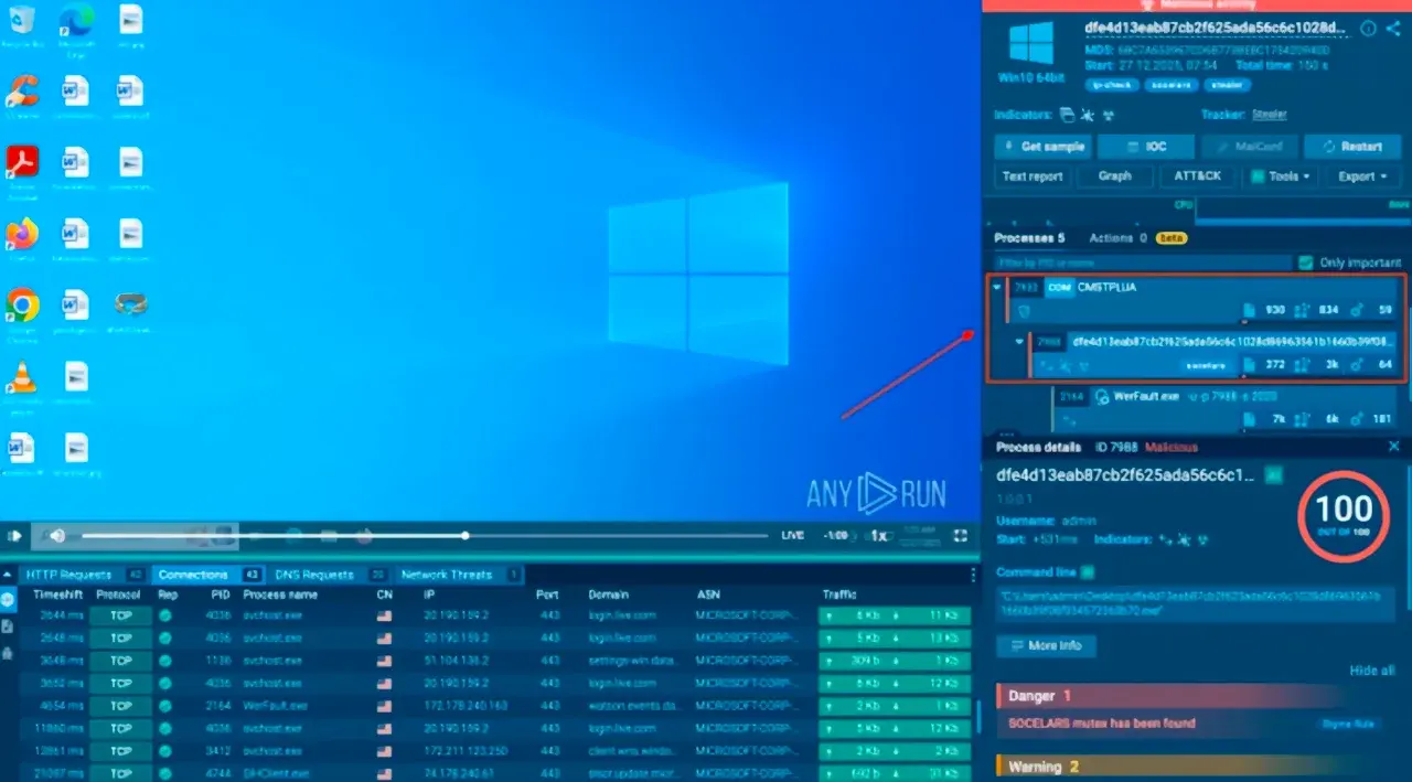 สำหรับในส่วนการทำงานเชิงเทคนิคของมัลแวร์นั้น ทางทีมวิจัยเผยว่า ตัวมัลแวร์จะเริ่มต้นด้วยการสำรวจลาดเลาของระบบ (System Reconnaissance) และ ตรวจสอบสภาพแวดล้อม (Environment) ของตัวระบบ ตามมาด้วยการเพิ่มสิทธิ์ในการเข้าใช้งานระบบ (System Privilege) แบบเล็ดลอดการถูกตรวจสอบโดยระบบป้องกัน User Account Control (UAC) ด้วยการใช้งานเทคนิค COM Auto-Elevation ซึ่งจะช่วยให้ตัวมัลแวร์สามารถอัปเกรดสิทธิ์โดยอัตโนมัติได้ผ่านทาง cmlua.dll และ ICMLuaUtil หลังจากนั้นตัวมัลแวร์ก็จะทำการสร้าง Mutex ชื่อ “patatoes” เพื่อป้องกันการรันตัวเองซ้ำซ้อน 2 รอบขึ้นมา แล้วจึงทำการติดต่อกับ URL ชื่อว่า iplogger[.]org เพื่อใช้ในการตรวจสอบ (Tracking) หมายเลข IP แล้วจึงทำให้ตัวเองค้าง (Crash) ให้คล้ายคลึงกับตัวแอปพลิเคชันทำงานล้มเหลว เพื่อหลอกลวงระบบตรวจสอบของเหยื่อ และทำงานตามขั้นตอนที่กล่าวมาข้างต้น