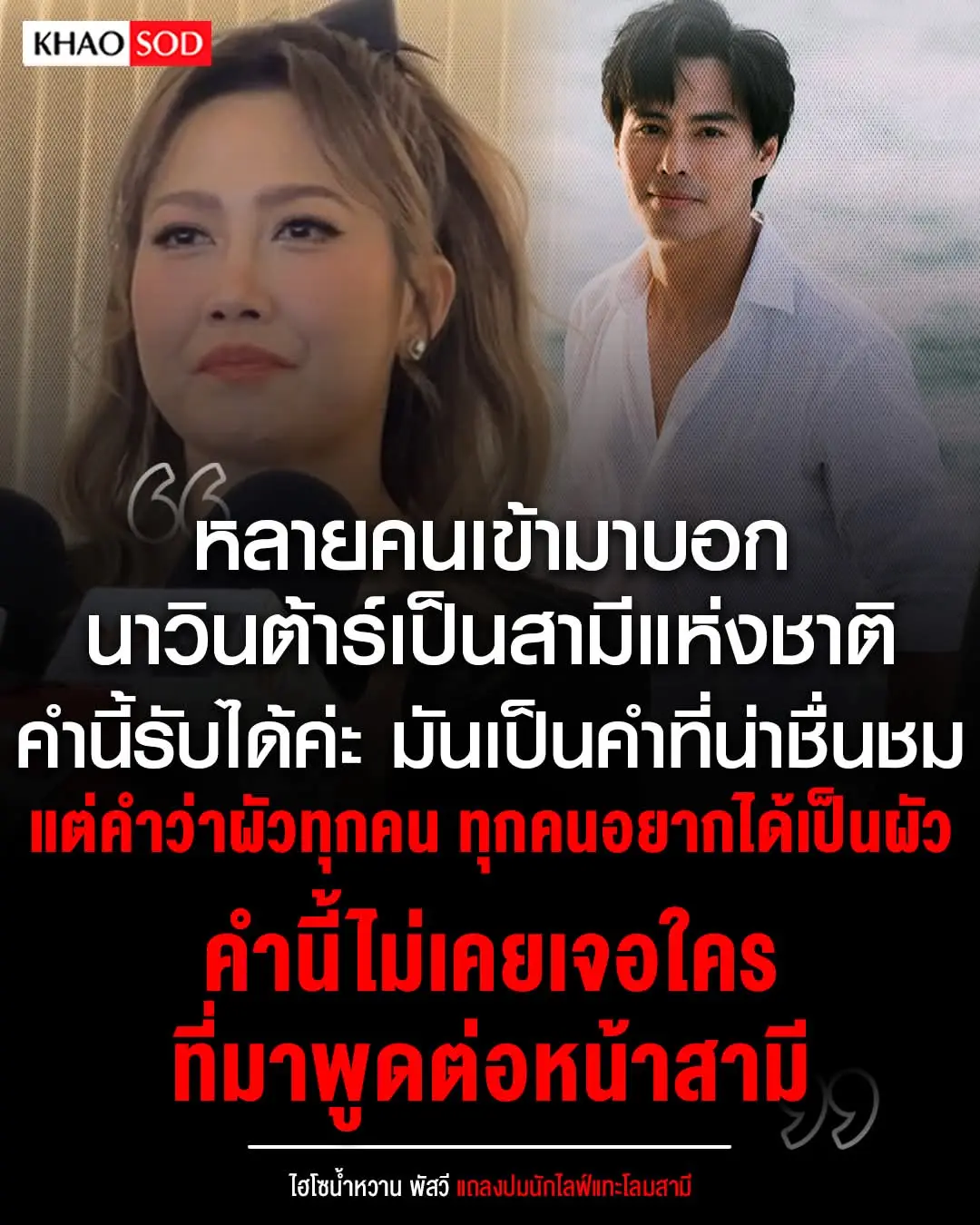 ไฮโซน้ำหวาน-พัสวี พยัคบุตร เป็นนักธุรกิจหญิงชื่อดัง เจ้าของFilorga Chlnic Thailand แหละผลิตภัณฑ์ดูแลรูปร่าง ภรรยาของอดีตนักร้อง นักแสดงหนุ่ม นาวิน ต้าร์ มีบุตรด้วยกัน3คน (ลูก้า มาโก้ ไมกี้ ) เธอเป็นที่รู้จักในฐานะคุณแม่หุ่นแซ่บและนักธุรกิจที่ดูแลตัวเองดีเยี่ยม สมรสกับนาวิน ต้าร์ เมื่อวันที่25 มีรสคม2560