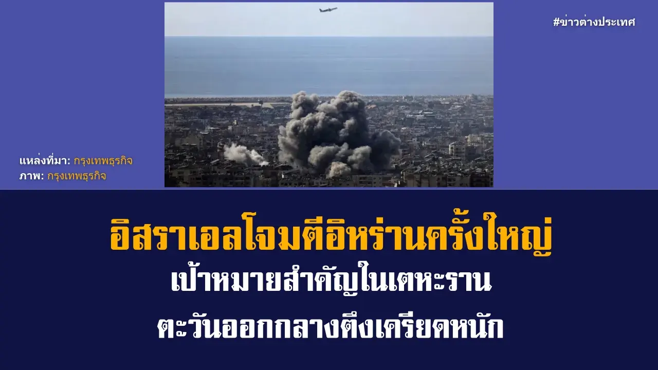 สถานการณ์ความตึงเครียดในตะวันออกกลางทวีความรุนแรง หลัง อิสราเอล เปิดปฏิบัติการโจมตีครั้งใหญ่ต่อ อิหร่าน โดยมีเป้าหมายสำคัญในกรุง เตหะราน รวมถึงสนามบินและหน่วยงานด้านความมั่นคง ส่งผลให้ความขัดแย้งในภูมิภาคขยายตัวและสร้างความกังวลต่อเสถียรภาพของตะวันออกกลาง