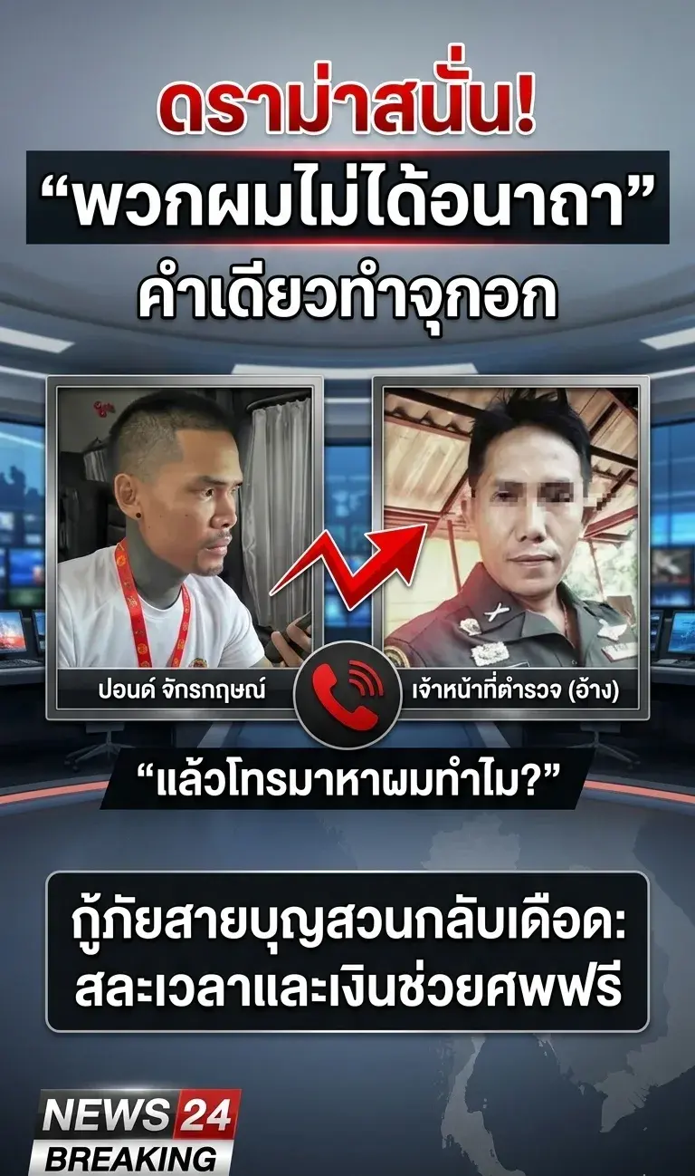 ตอกกลับนิ่มๆ แต่เจ็บ: ปอนด์สวนทันควัน "ถ้าไม่ได้อนาถา แล้วจะติดต่อผมมาทำไม?" พร้อมย้ำว่าคนทำงานจิตอาสาสละทั้งแรงกายและทุนทรัพย์ส่วนตัว ควรได้รับเกียรติมากกว่านี้
