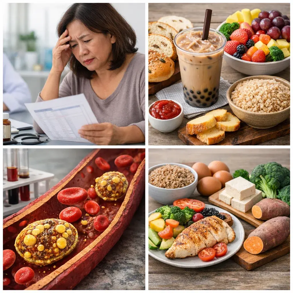ผู้เชี่ยวชาญอธิบายว่า หลายคนมักเข้าใจว่าไขมันในเลือดสูงเกิดจากการกินมันหมูหรือของทอดเป็นหลัก แต่ในความเป็นจริงแล้ว น้ำตาลและแป้งขัดขาวก็สามารถทำให้ไขมันในเลือดเพิ่มขึ้นได้เช่นกัน