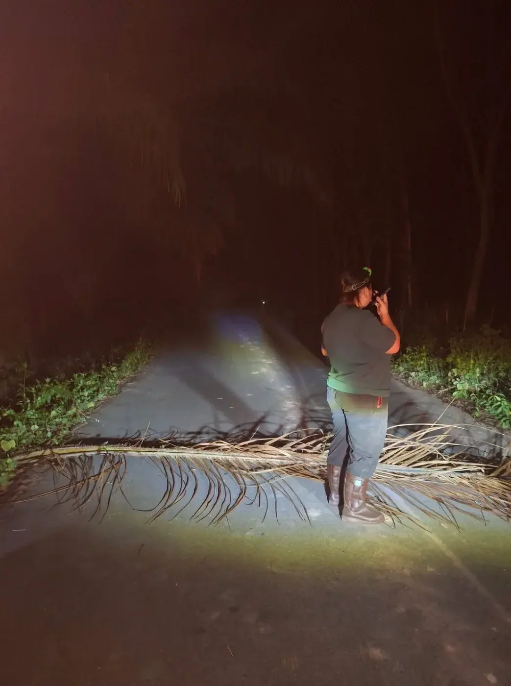 เมื่อช่วงเวลาประมาณ 03.00 น.วันที่ 10 มีนาคม 2569 ตำรวจ สภ.ทุ่งใหญ่ และฝ่ายปกครอง อ.ทุ่งใหญ่ จ.นครศรีธรรมราช รับแจ้งเหตุคนคลุ้มคลั่งเอาทางปาล์มมาขวางถนนสายควนธัมมัง – หนองน้ำขาว หมู่ 8 ต.บางรูป อ.ทุ่งใหญ่ และใช้ไม้ไล่ทำร้ายชาวบ้านขี่รถจักรยานยนต์ไปกรีดยางพารา จึงรีบเดินทางไปตรวจสอบ